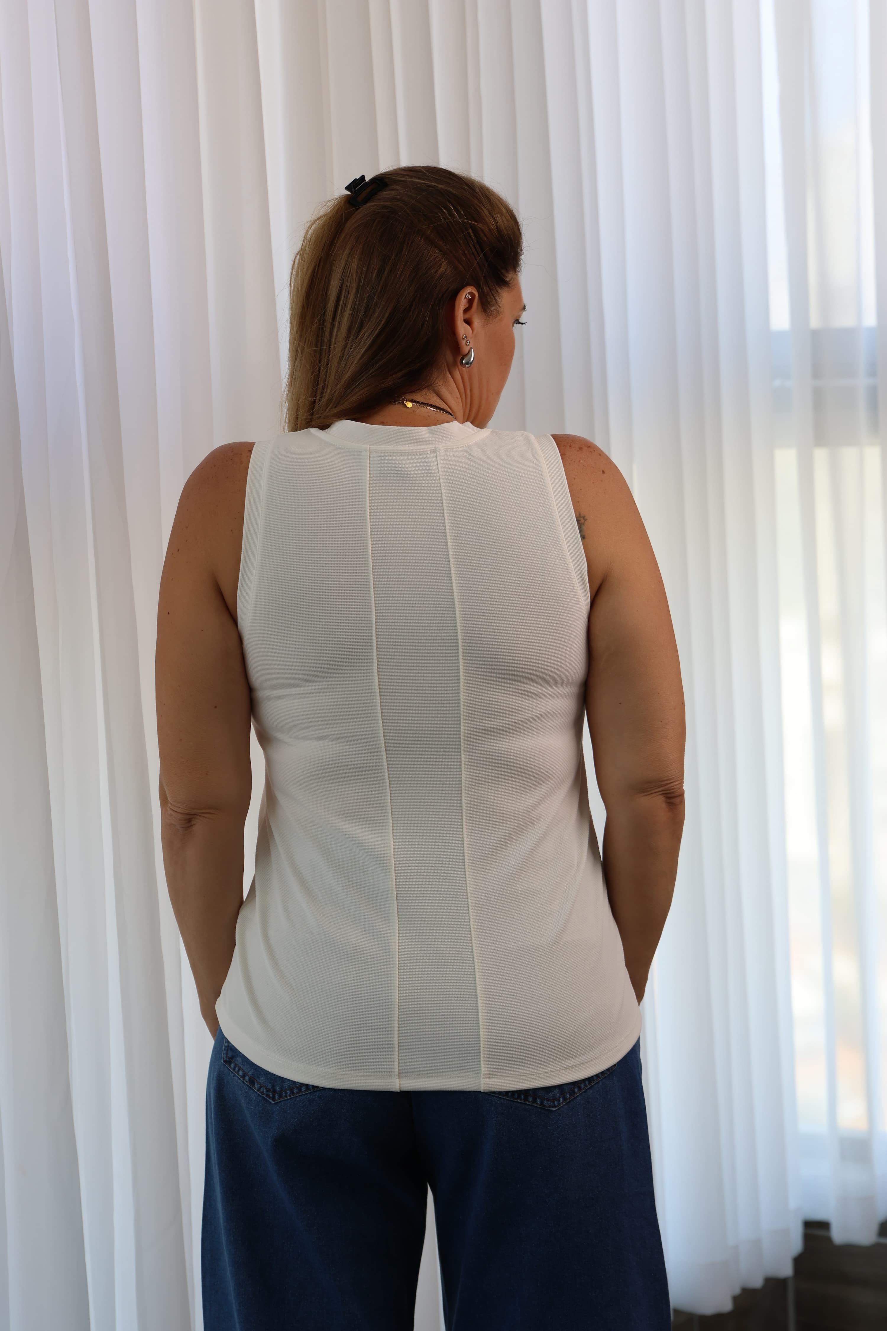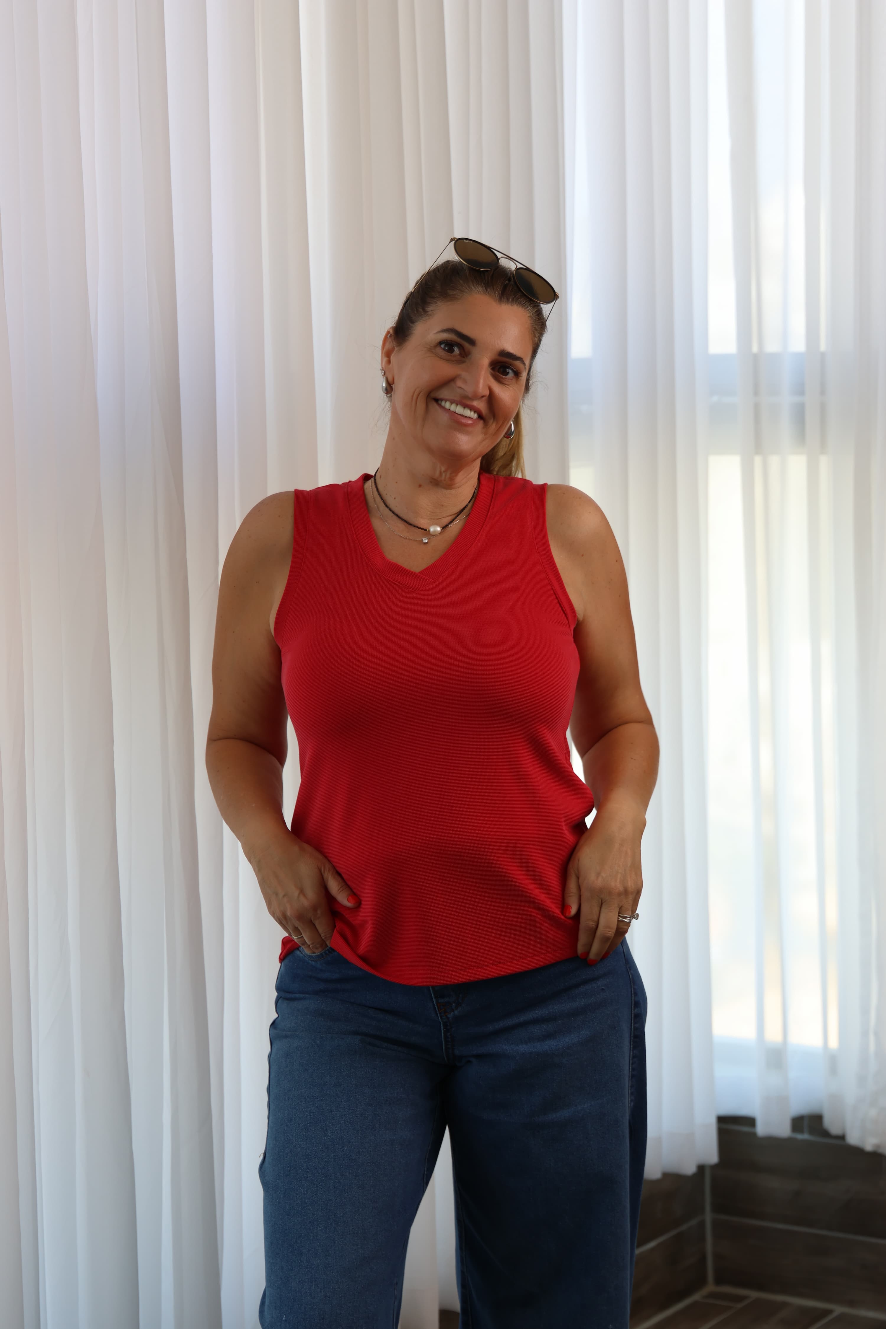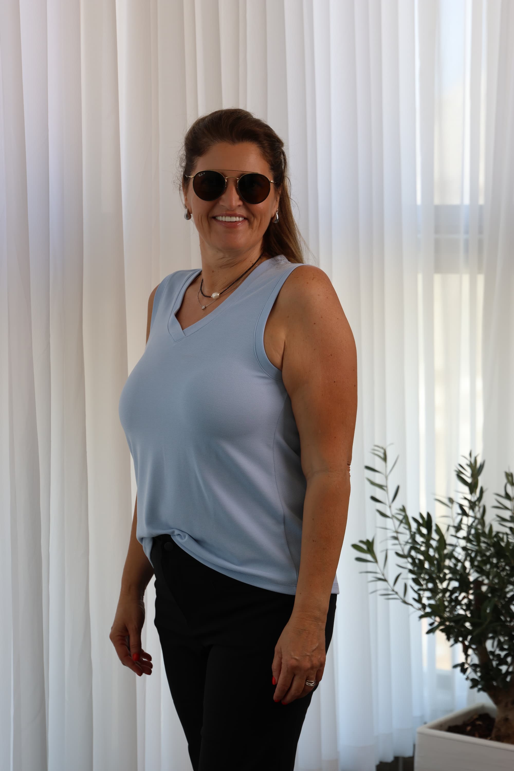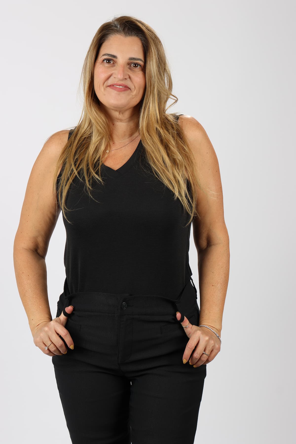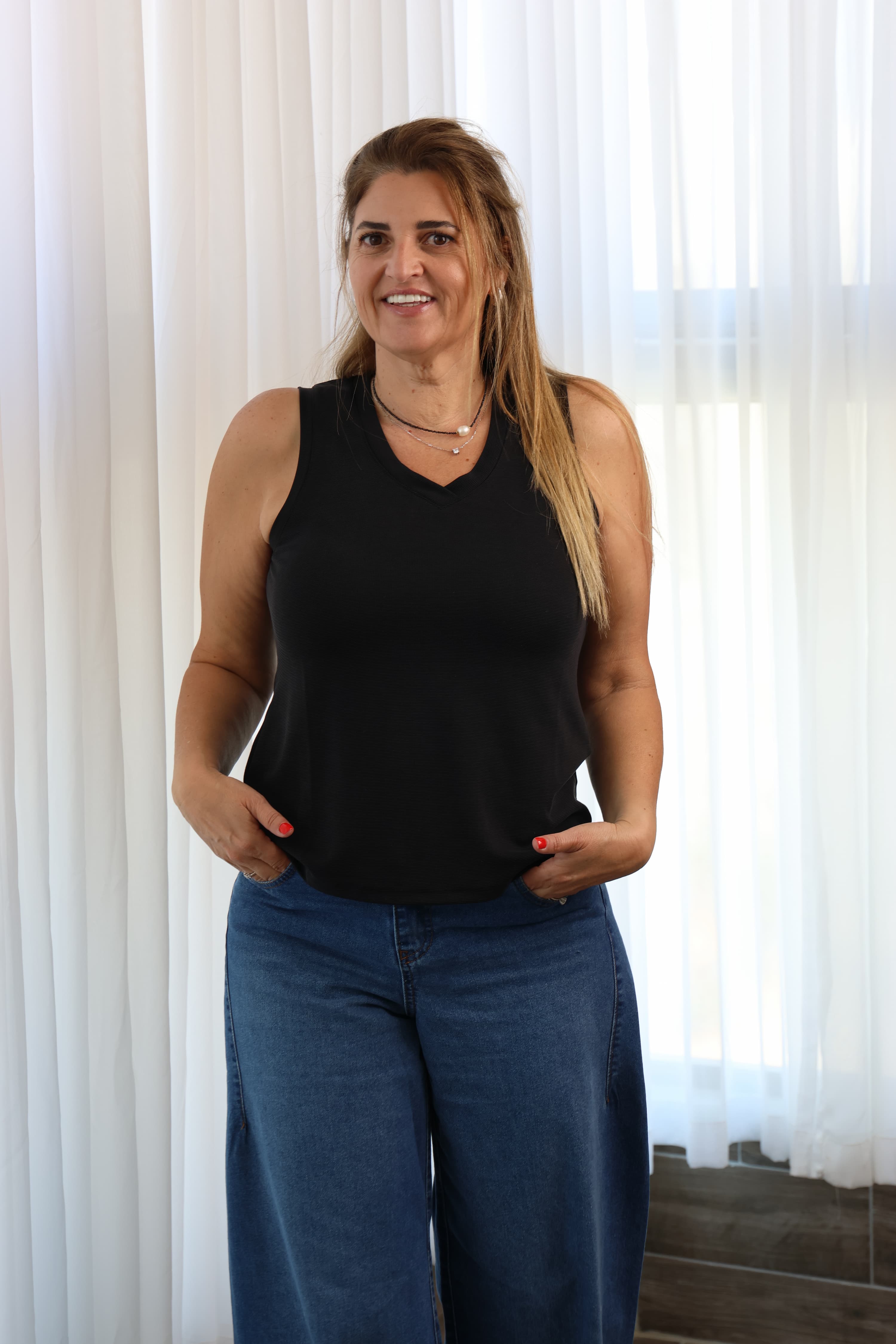 גופיה וי מבד מודל עם טקסטורה של וופל עדין