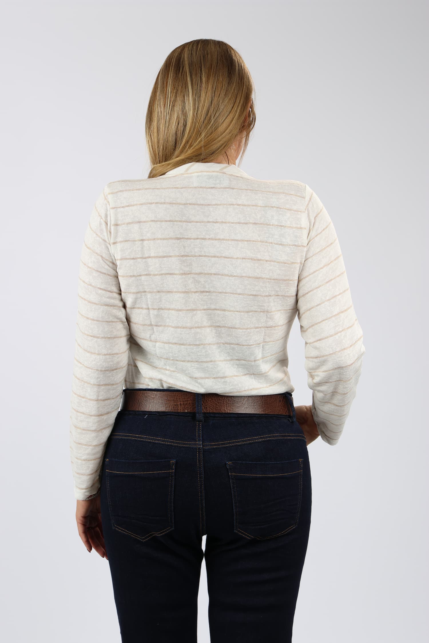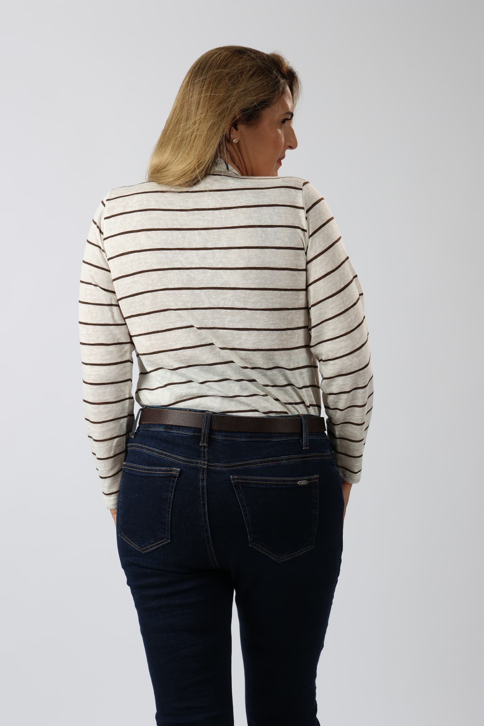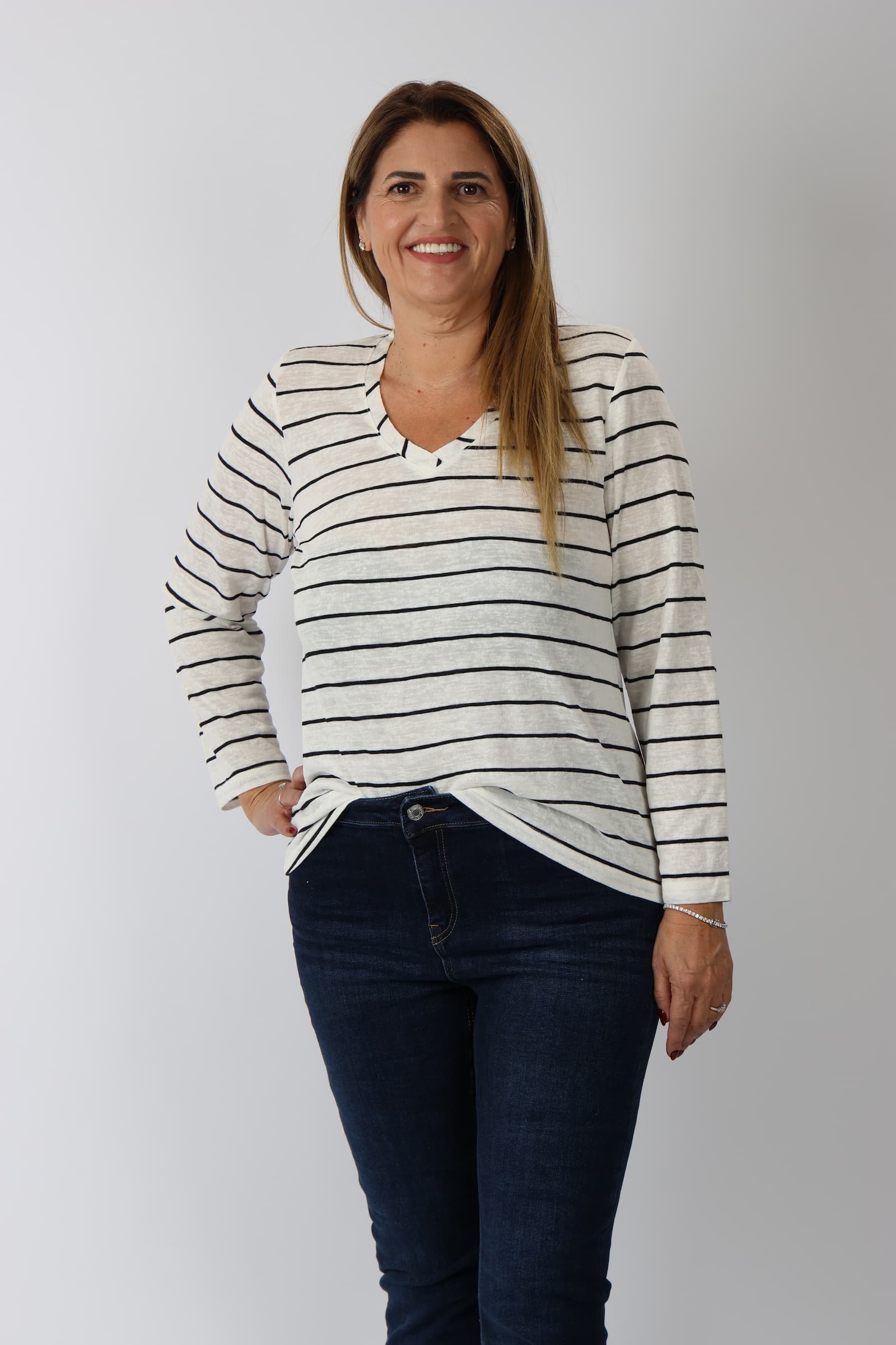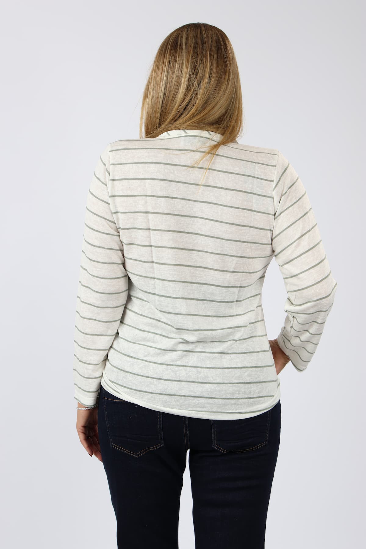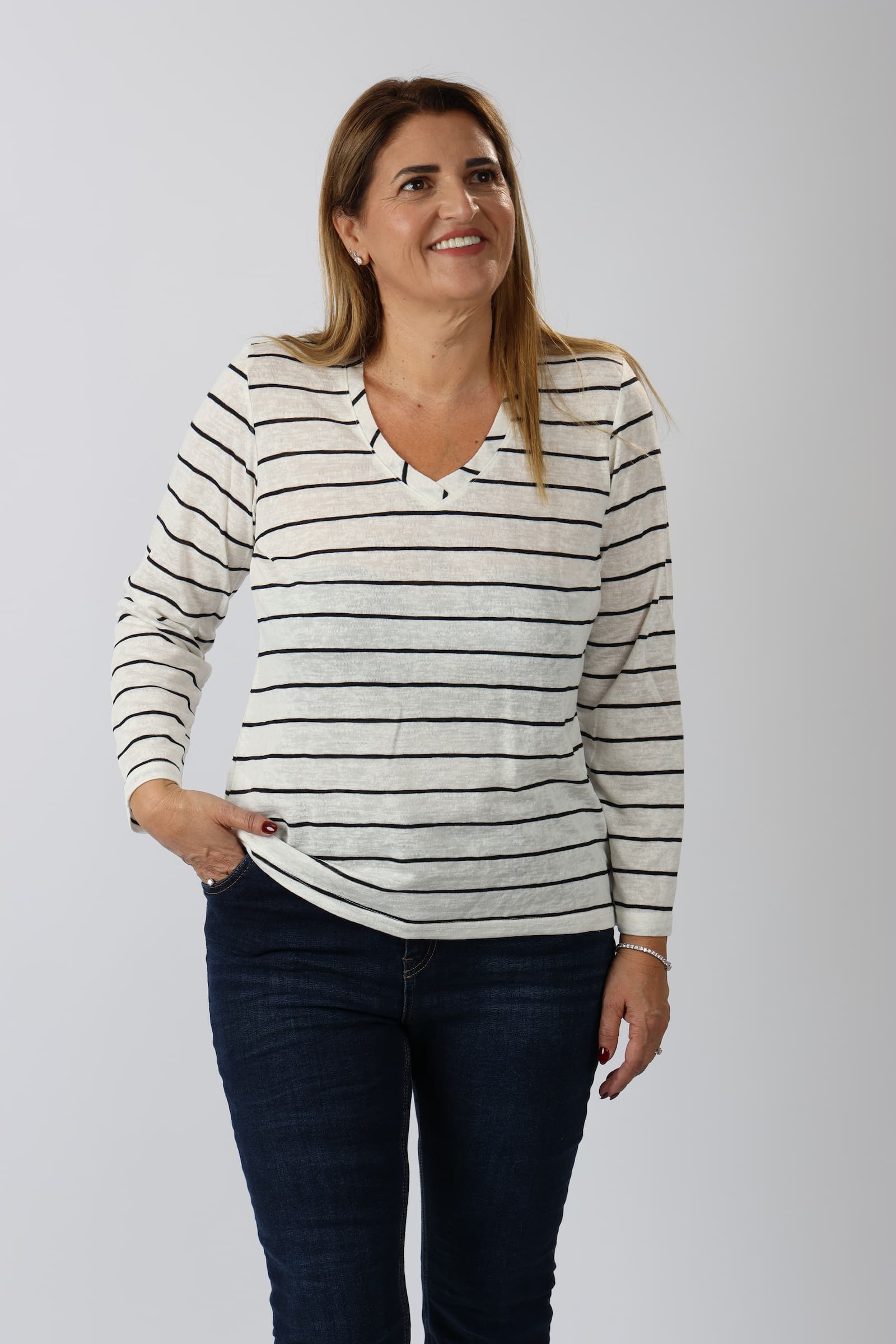 חולצה V פסים דמוי פשתן
