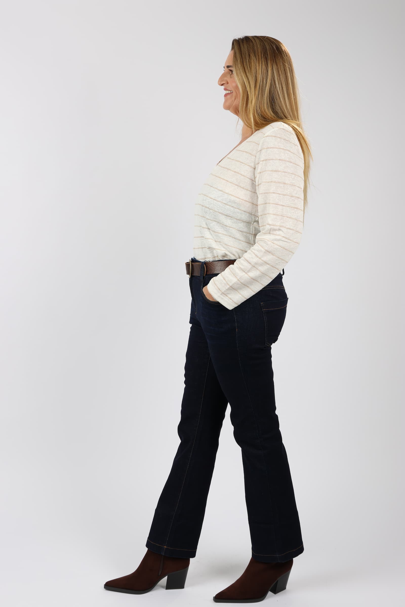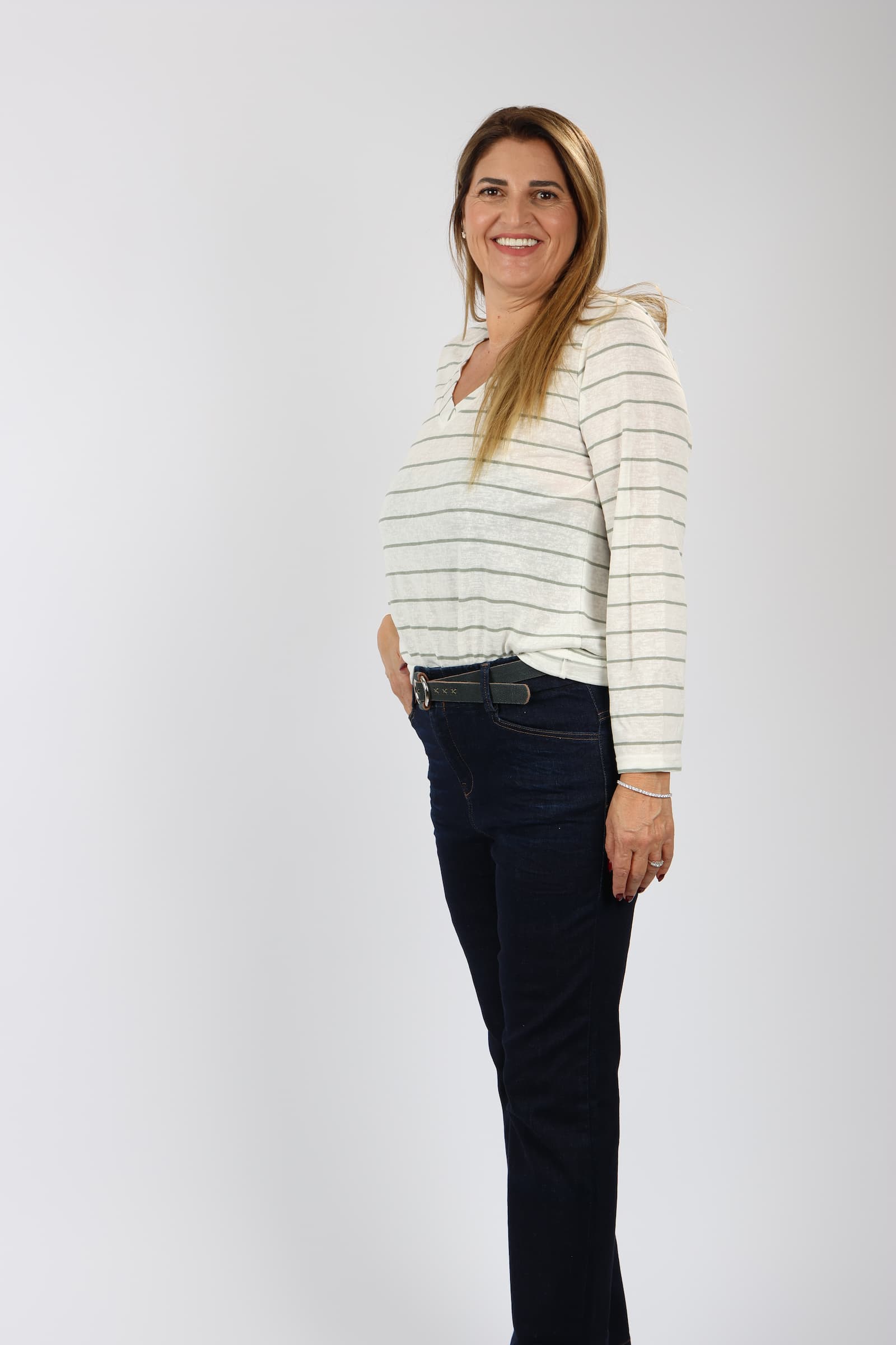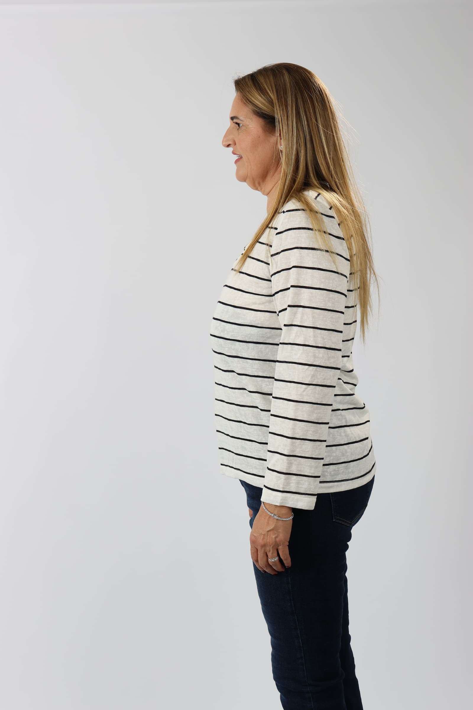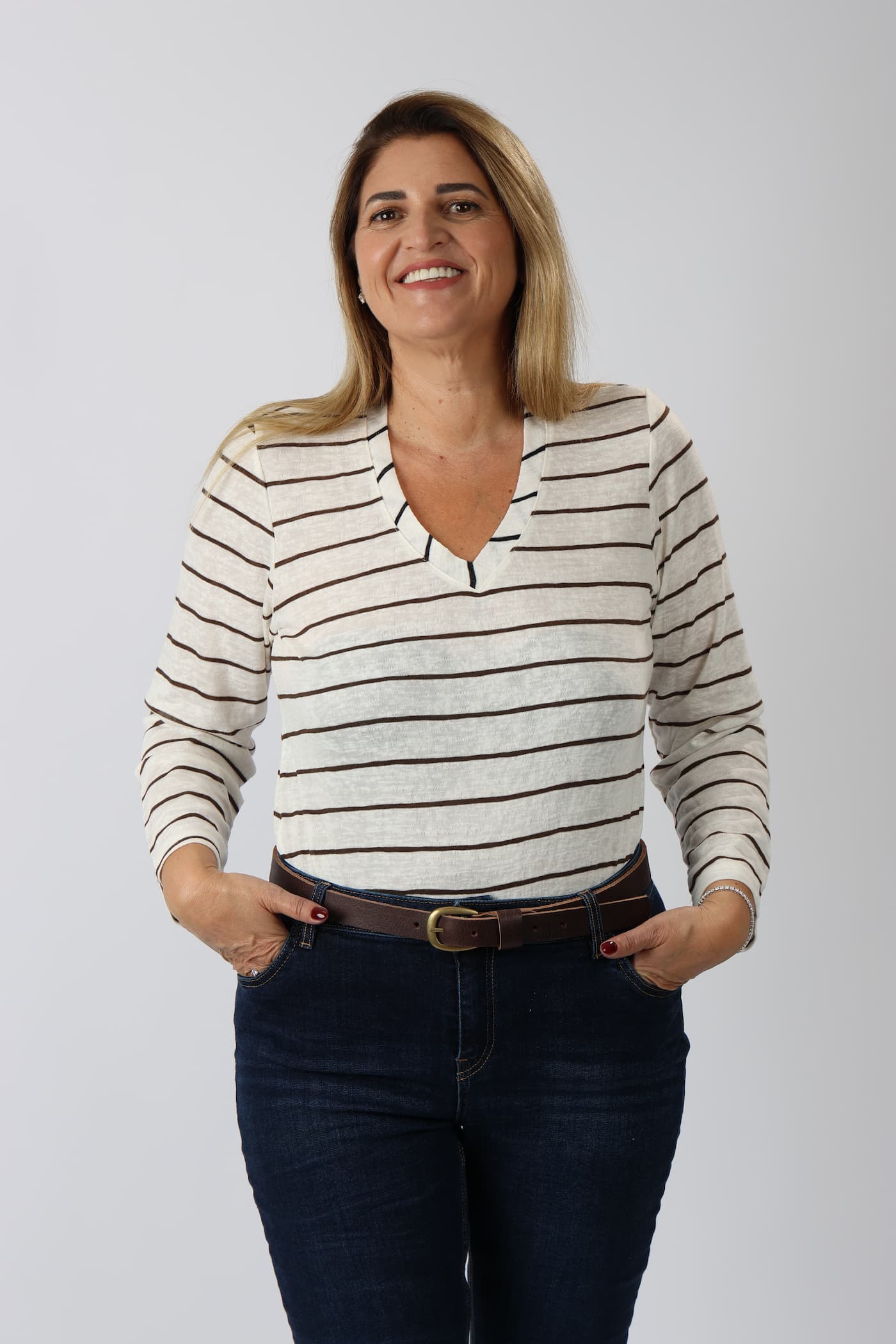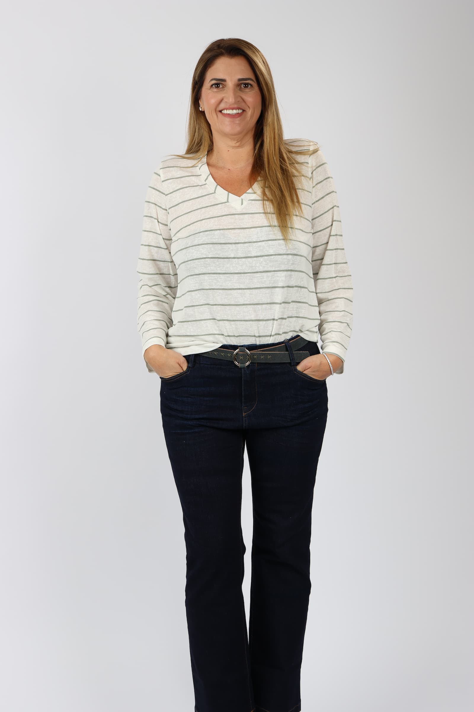חולצה V פסים דמוי פשתן