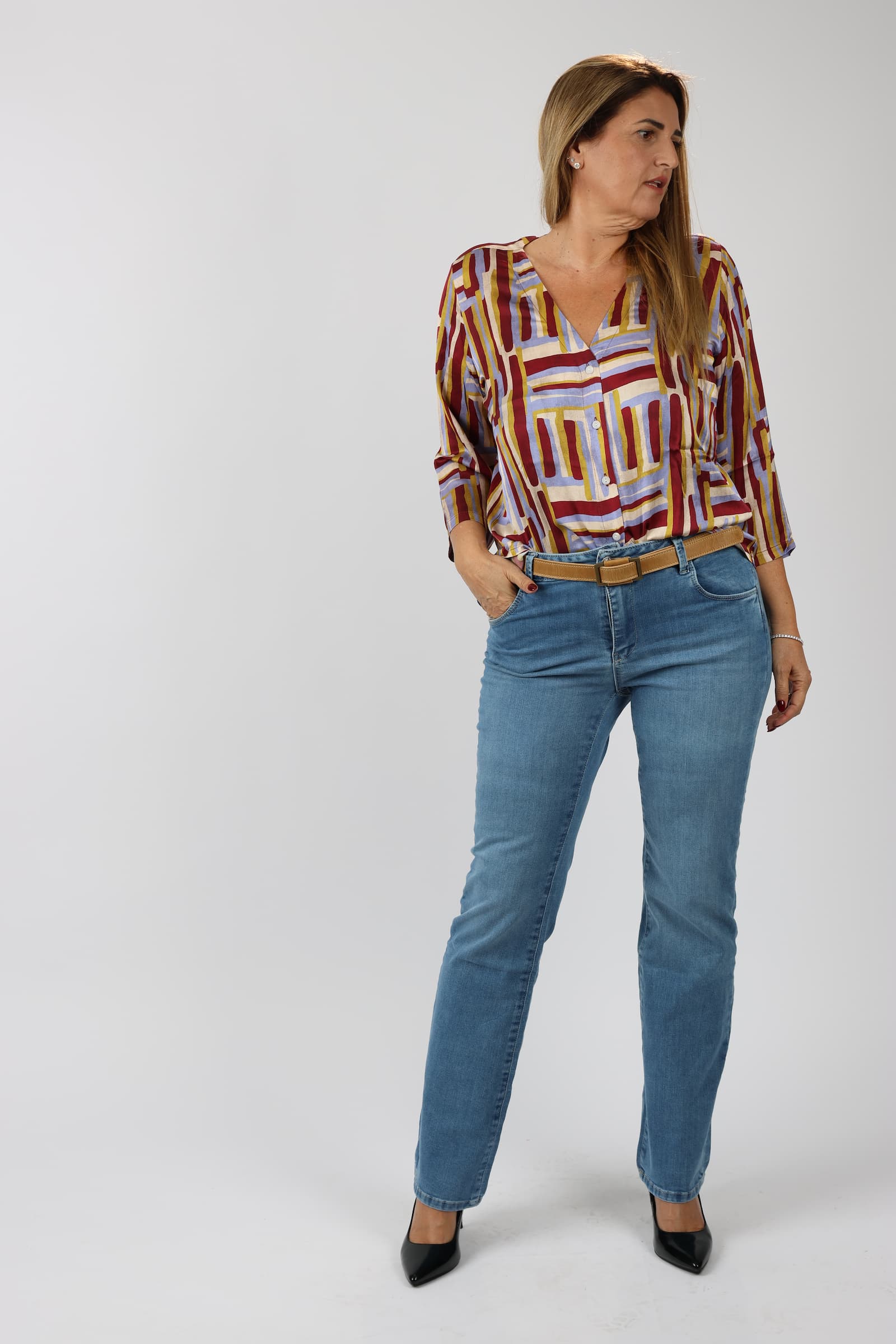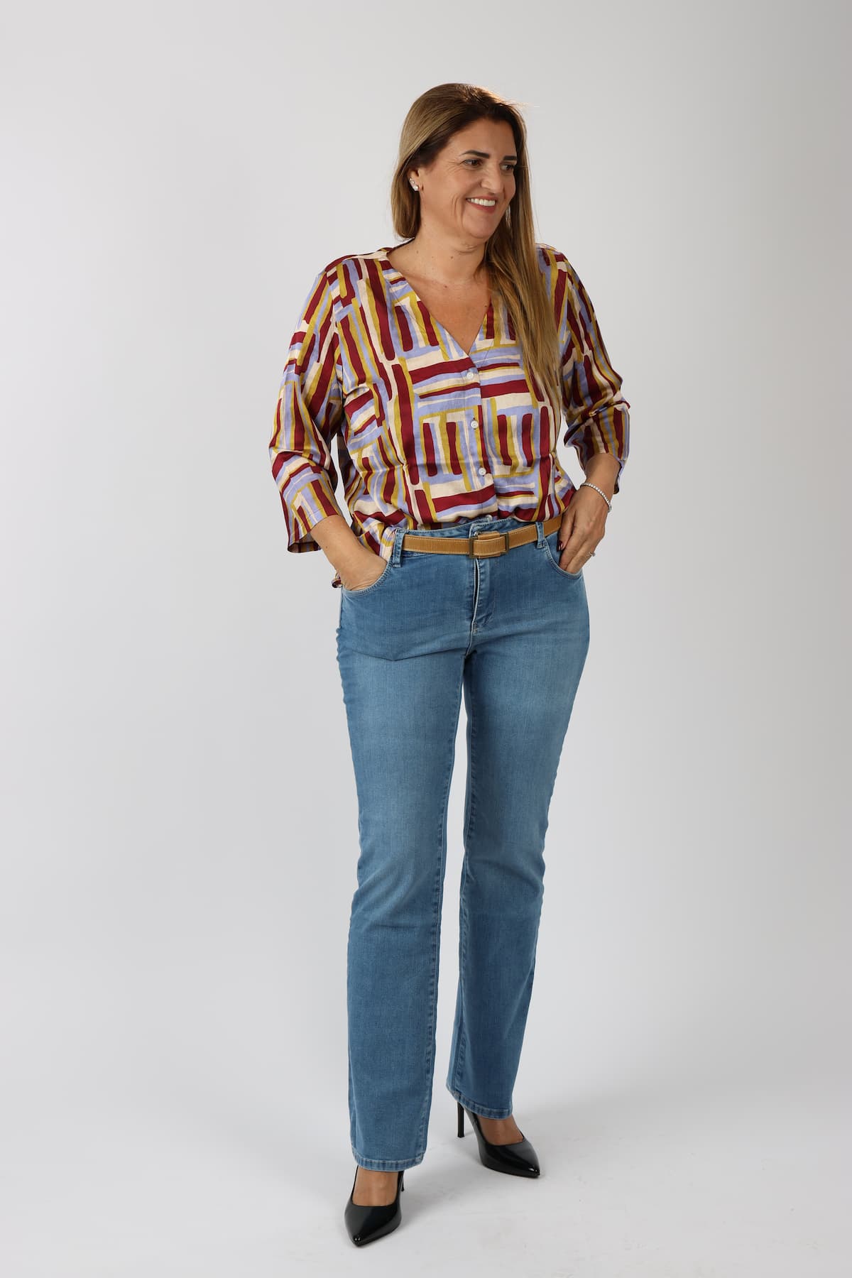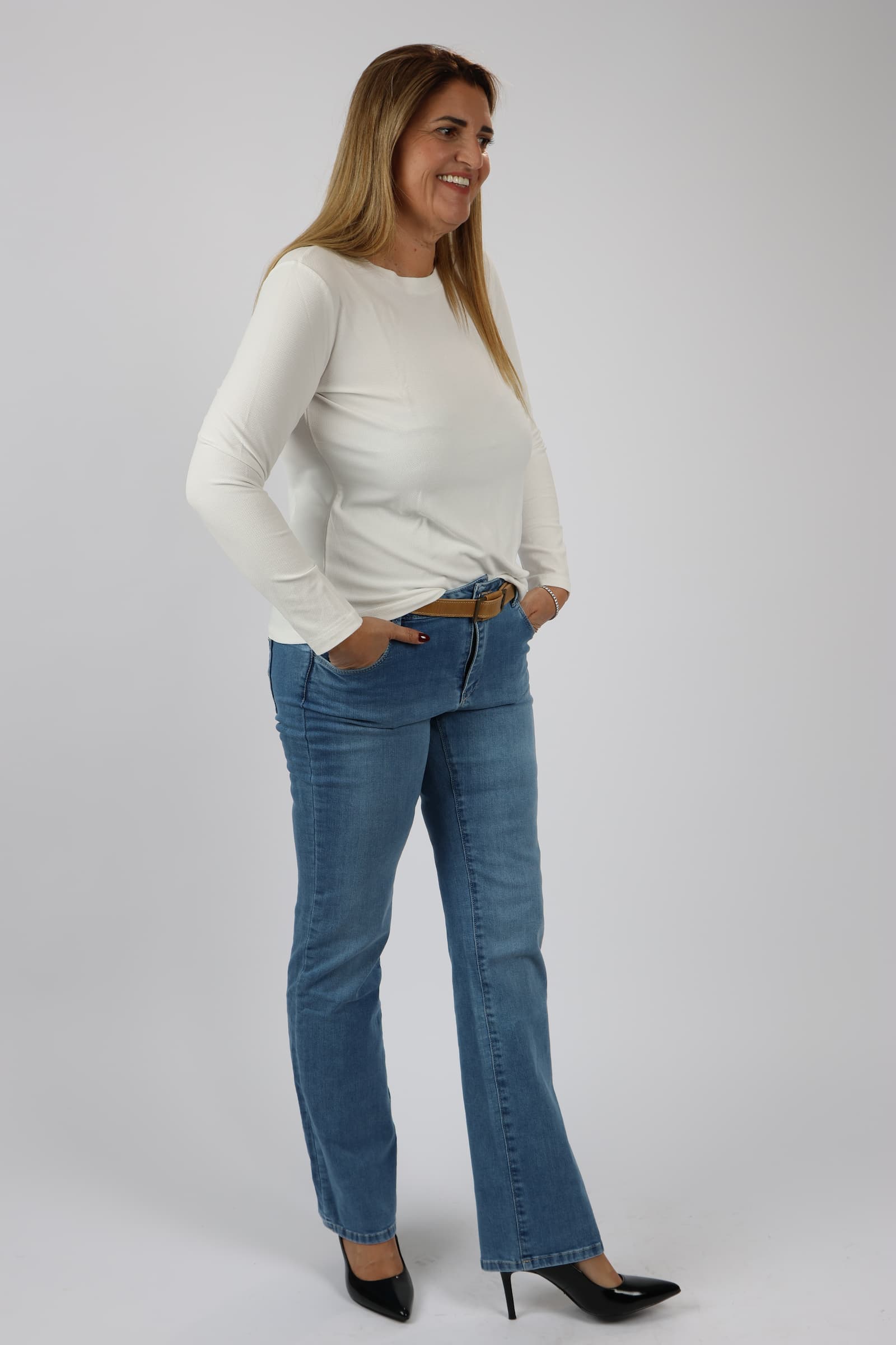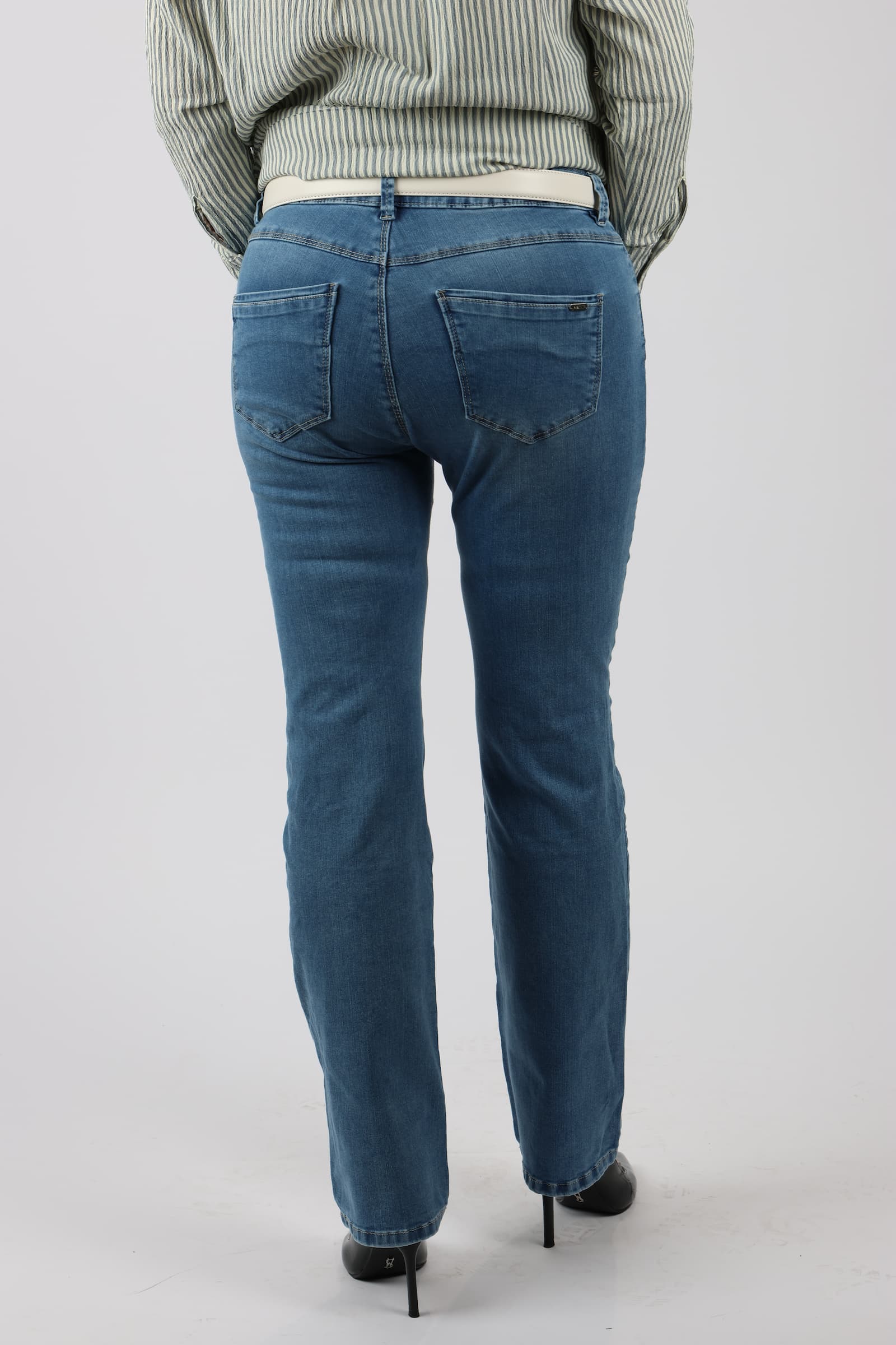 מכנסי ג'ינס בגזרה ישרה, רכיסת כפתור ורוכסן, כיסים קדמיים ואחוריים