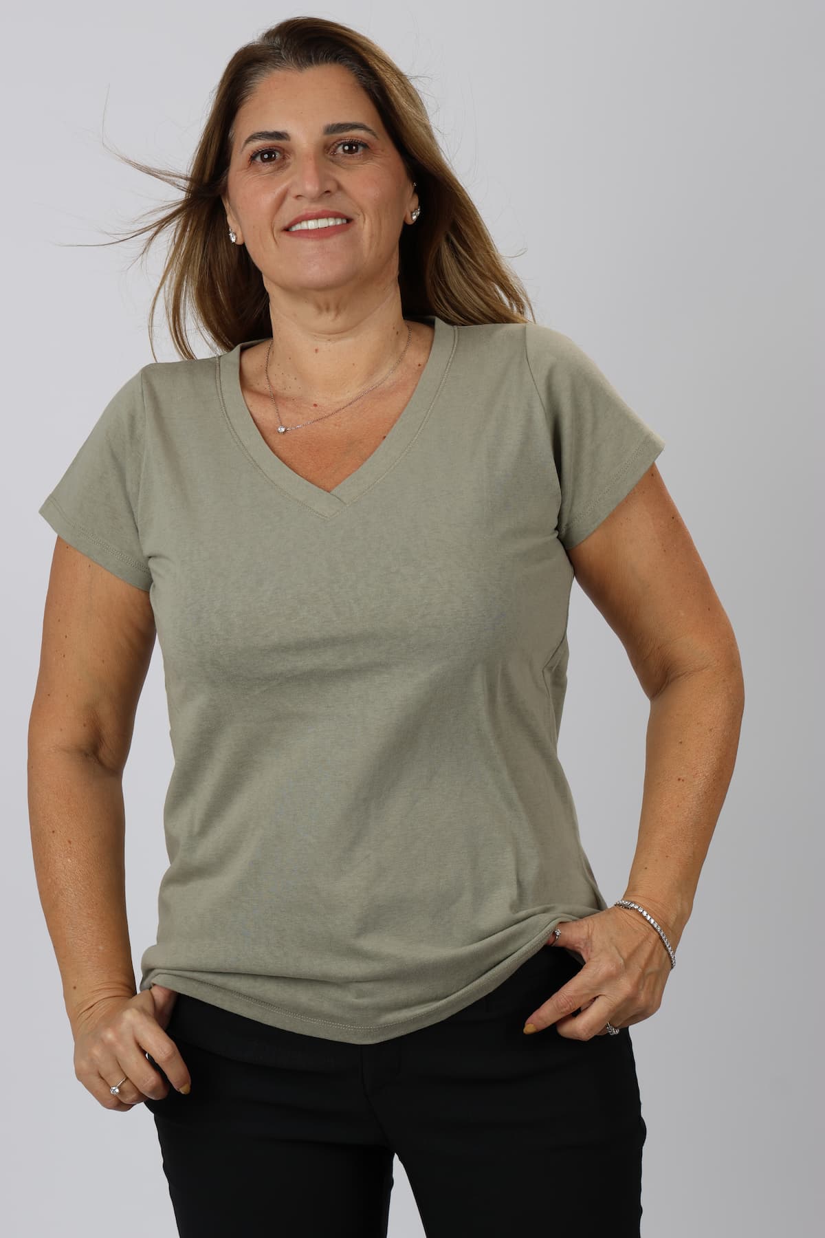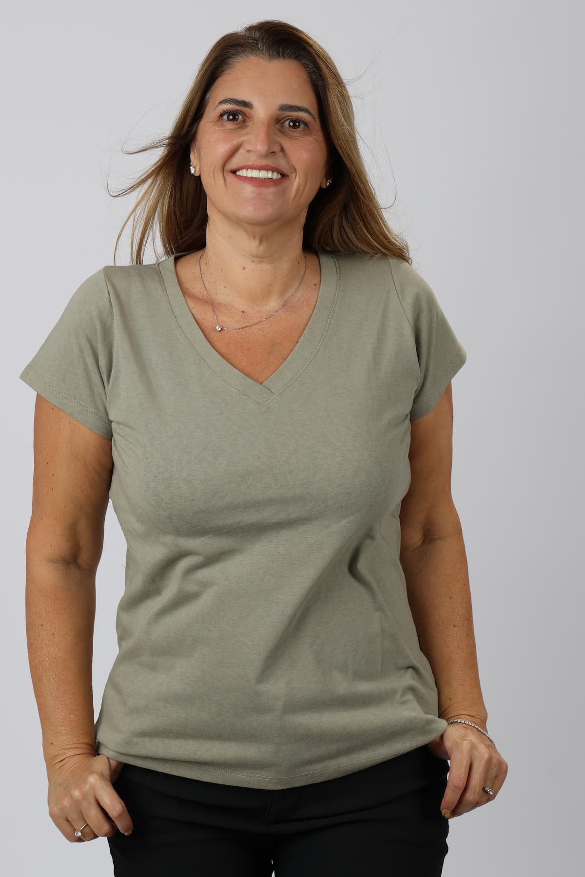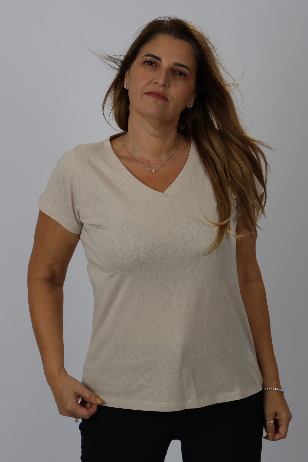 חולצה וי עם תפר מיוחד סביב ה-וי