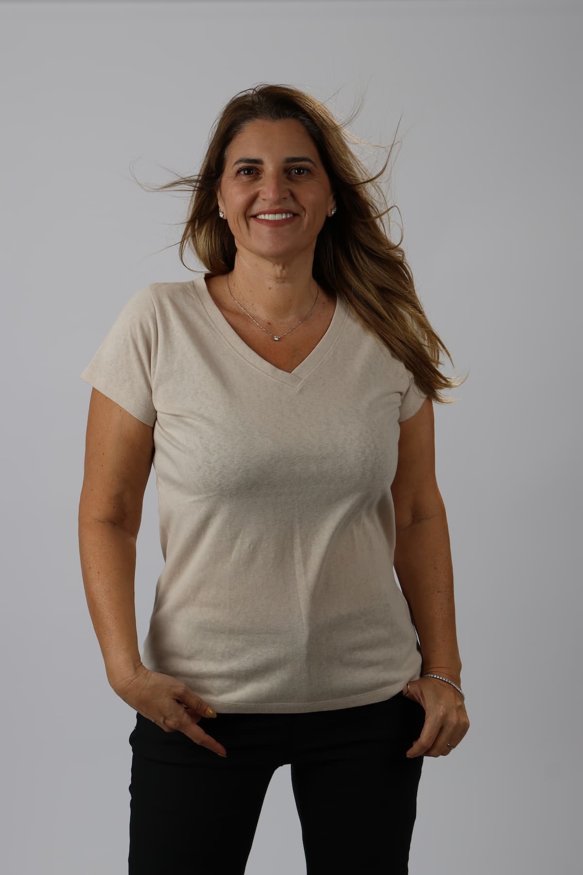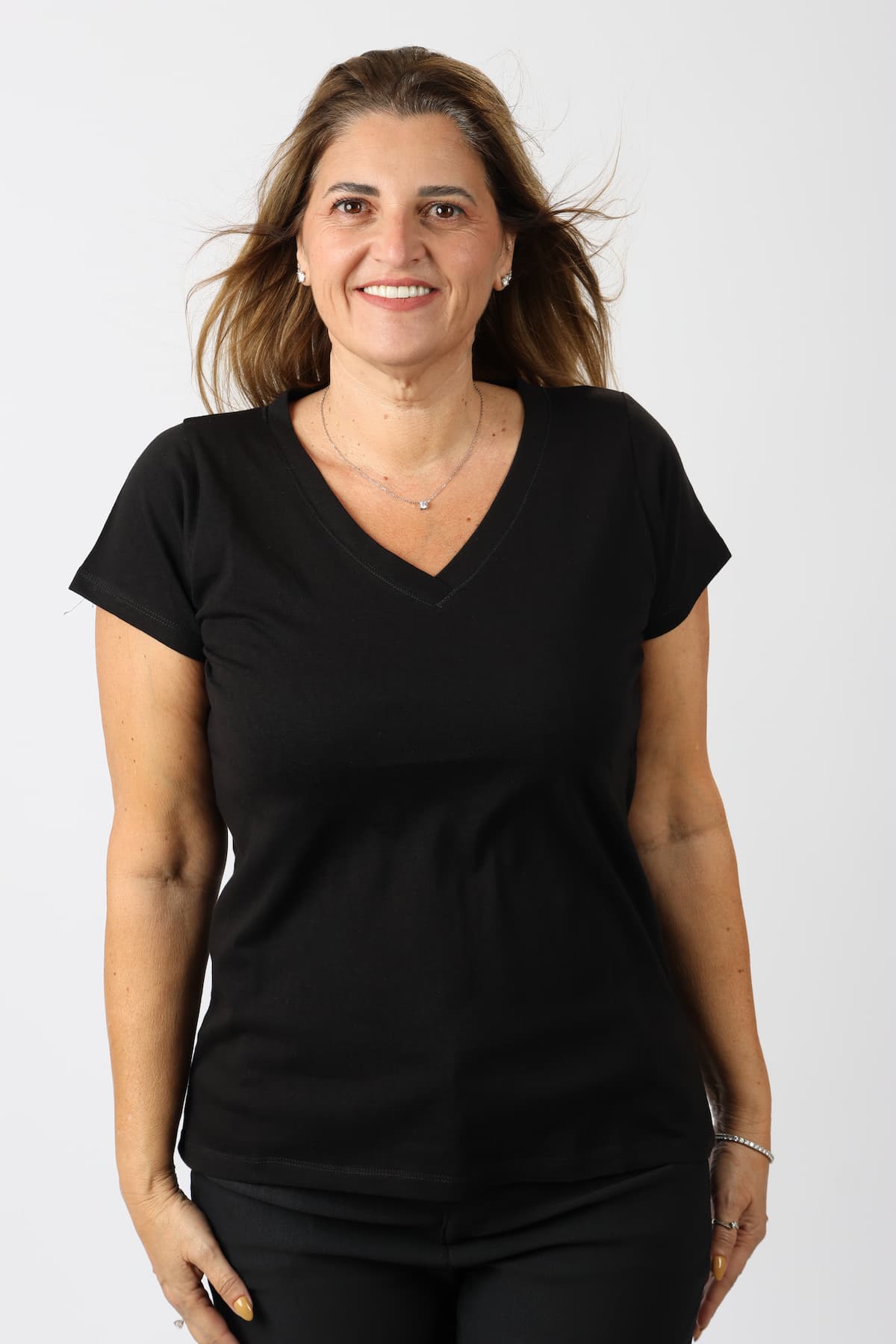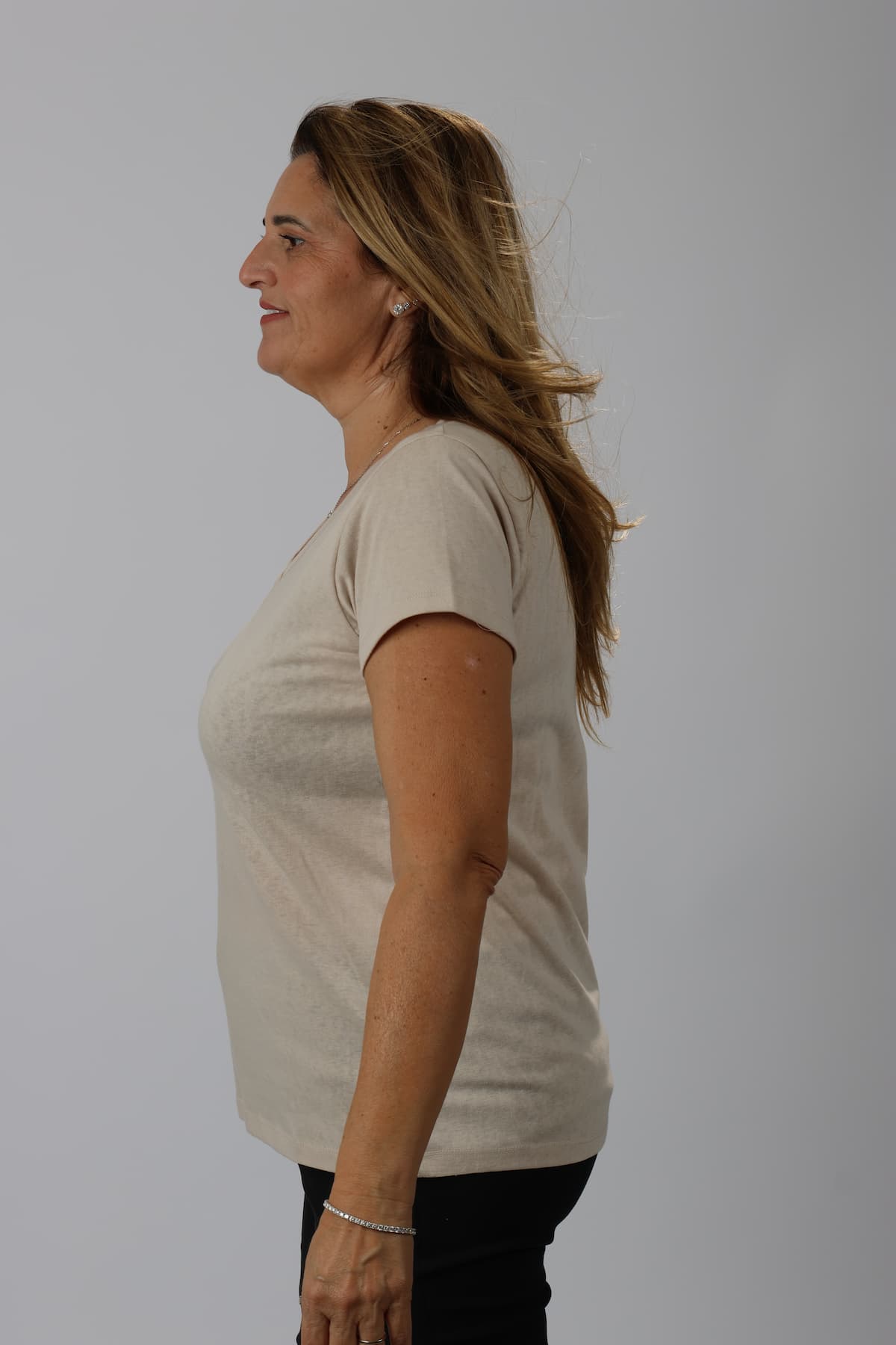 חולצה וי עם תפר מיוחד סביב ה-וי