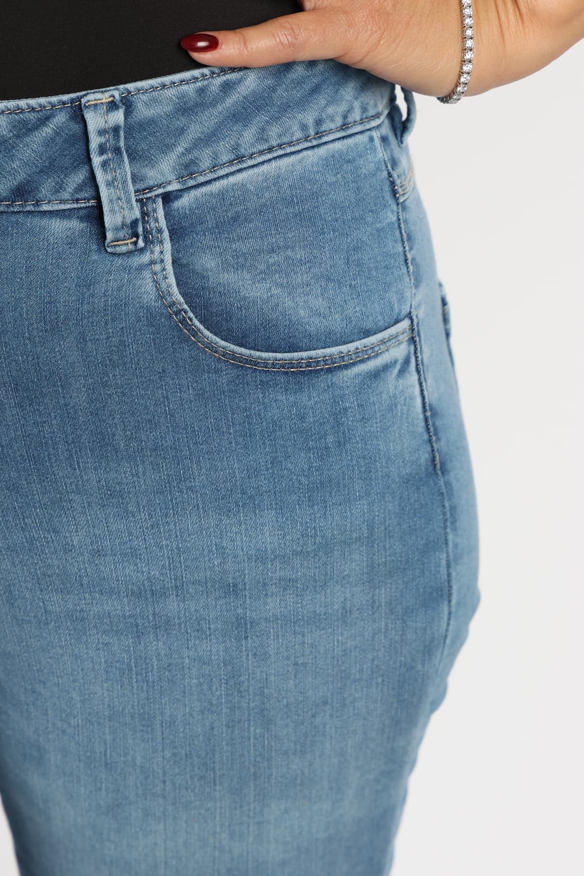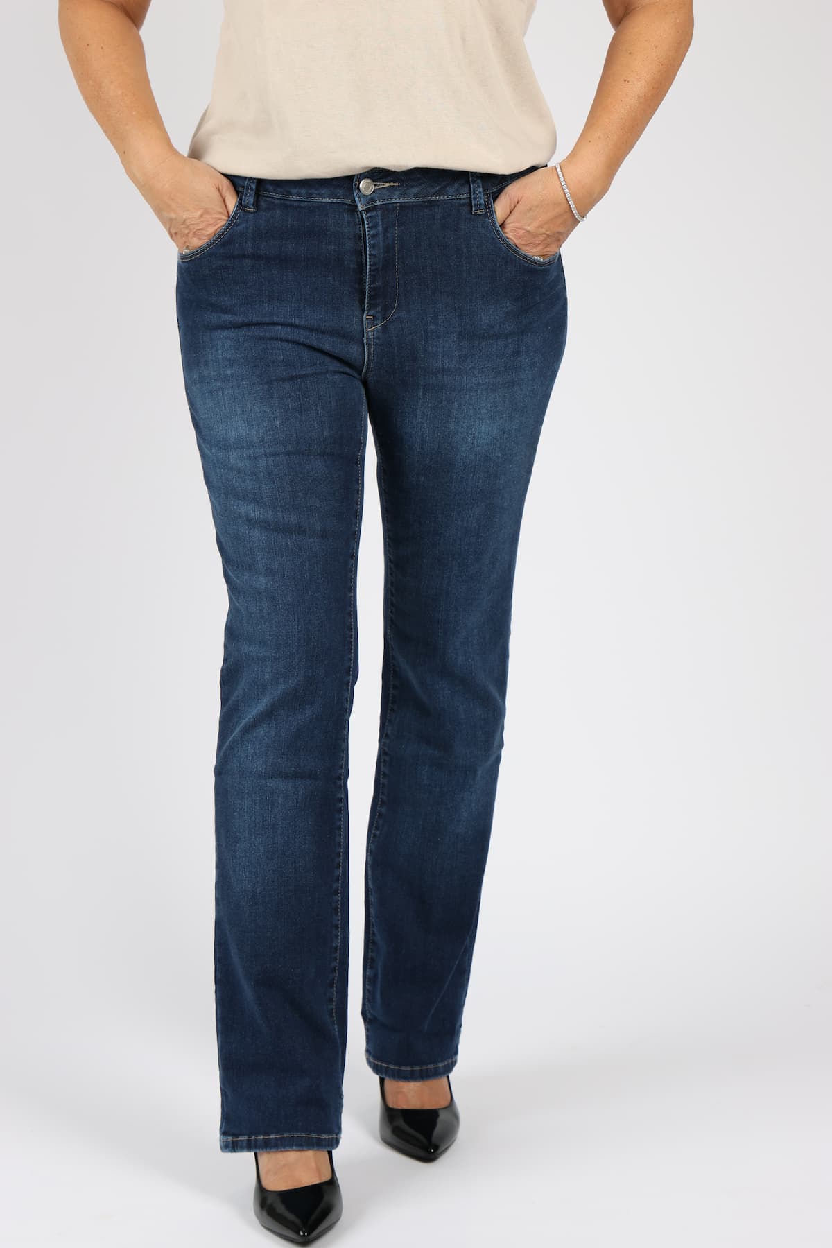 מכנסי ג'ינס בגזרה ישרה, רכיסת כפתור ורוכסן, כיסים קדמיים ואחוריים