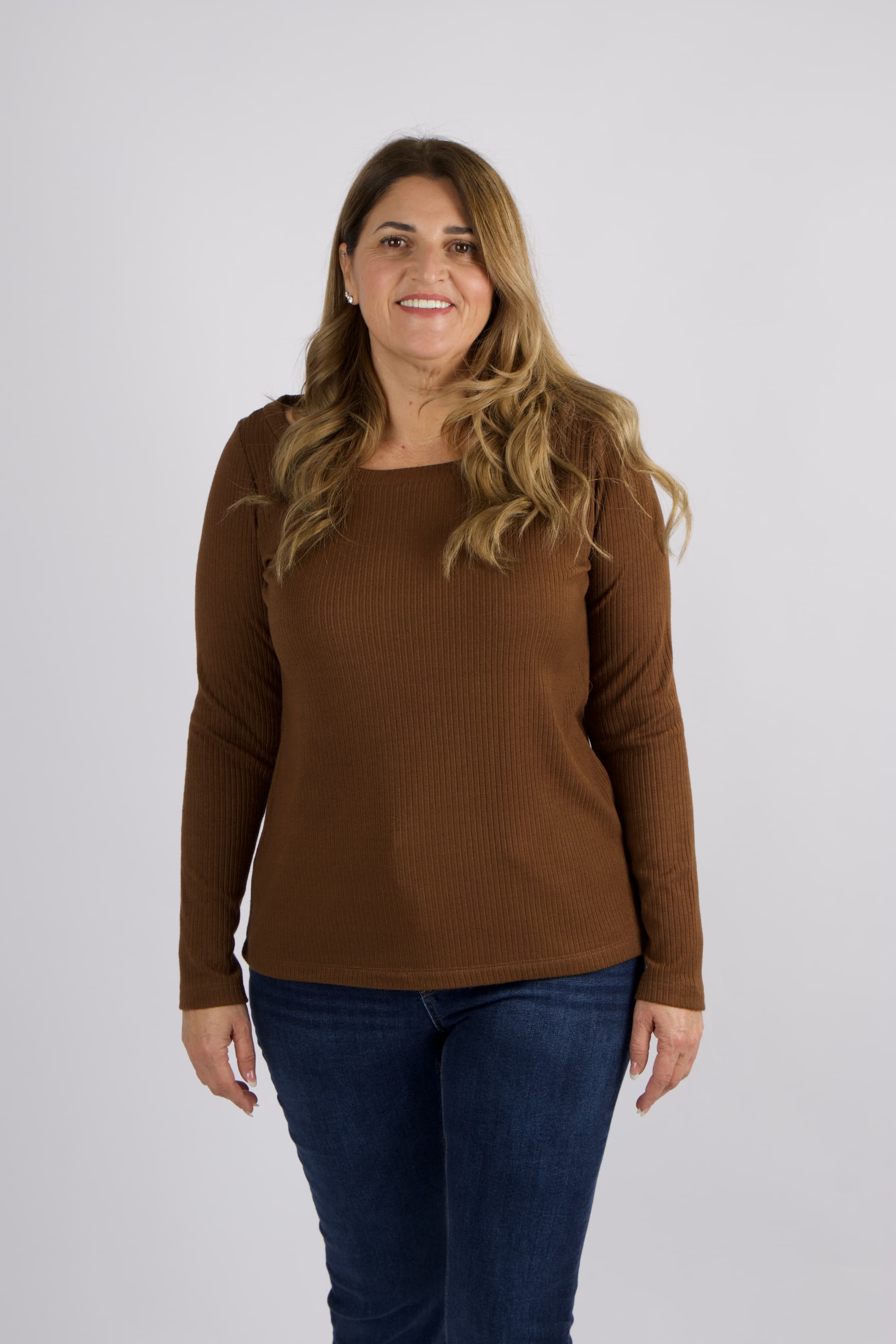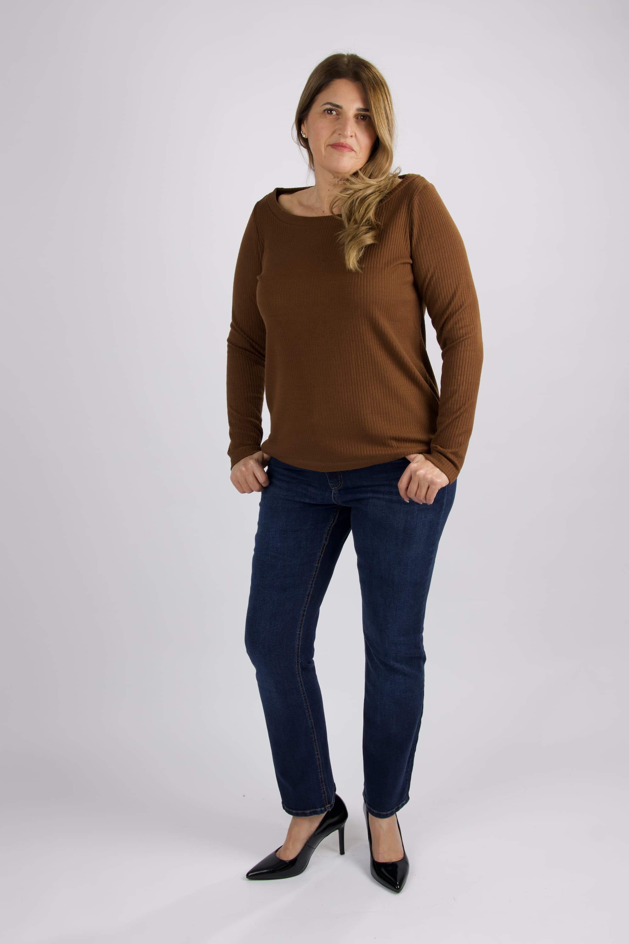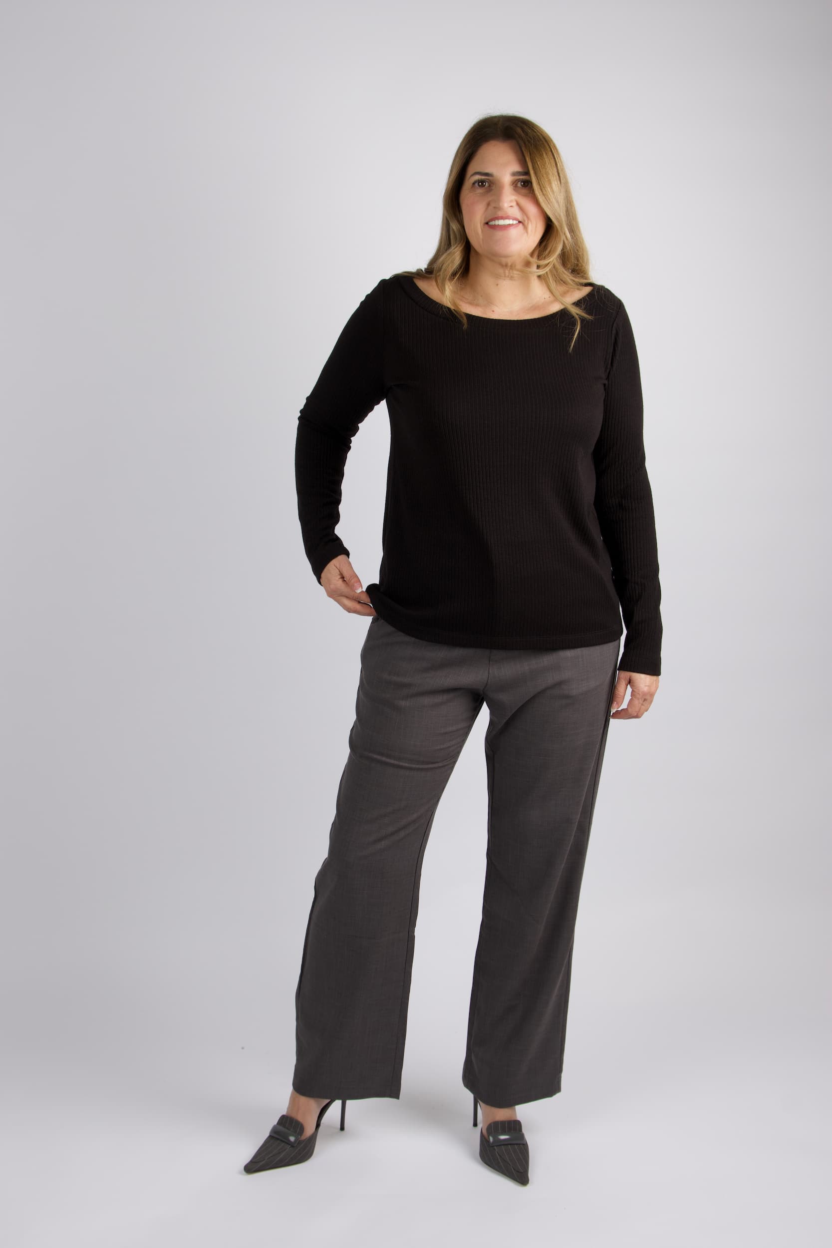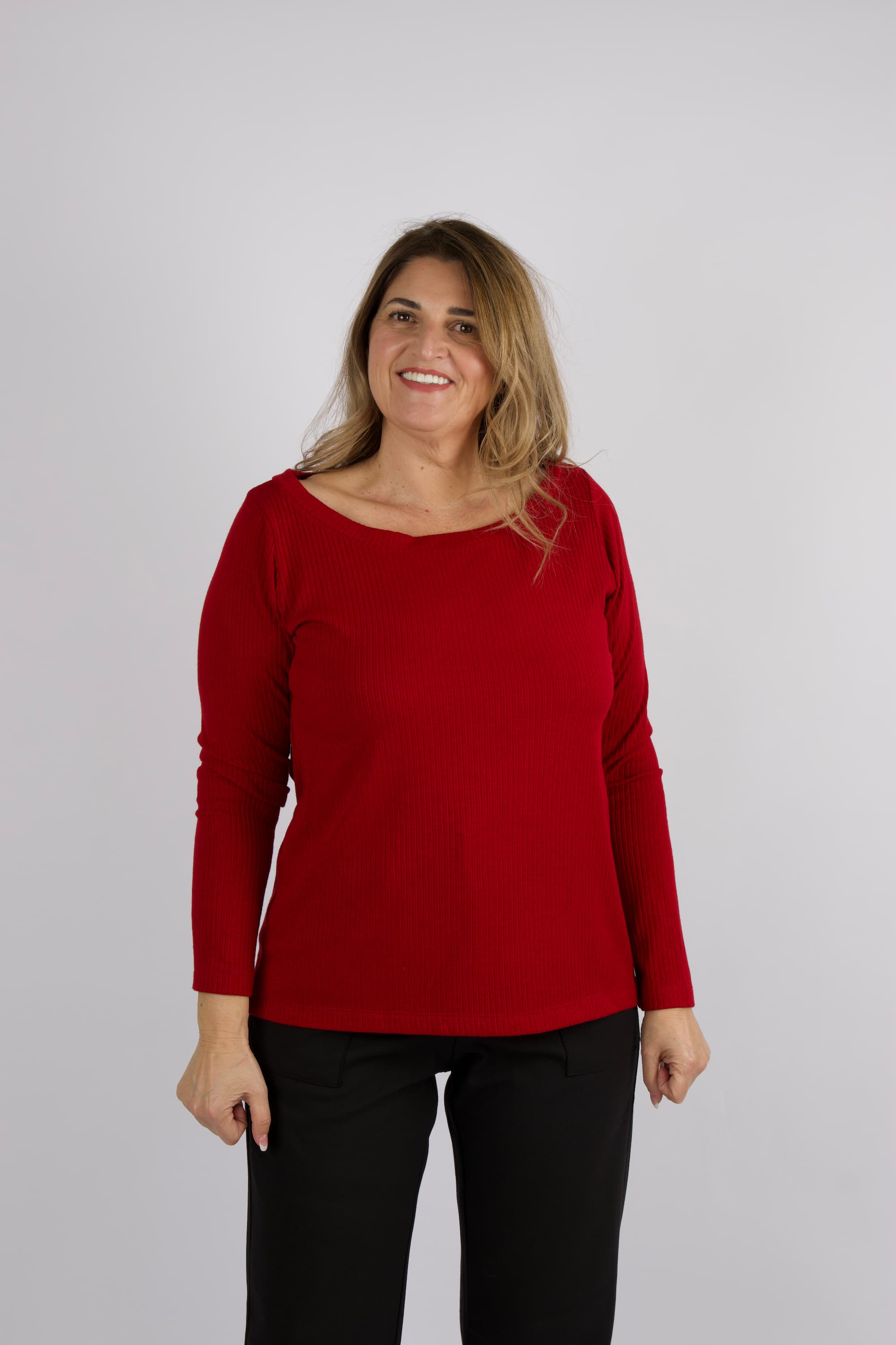 חולצת סירה קלאסית ומתוחכמת בעיצוב נקי ומינימליסטי. פתח הסירה המחמיא מדגיש את קו הכתפיים ומעניק מראה אלגנטי ונשי שמתאים לכל אירוע - מהמשרד ועד לערב בחוץ.