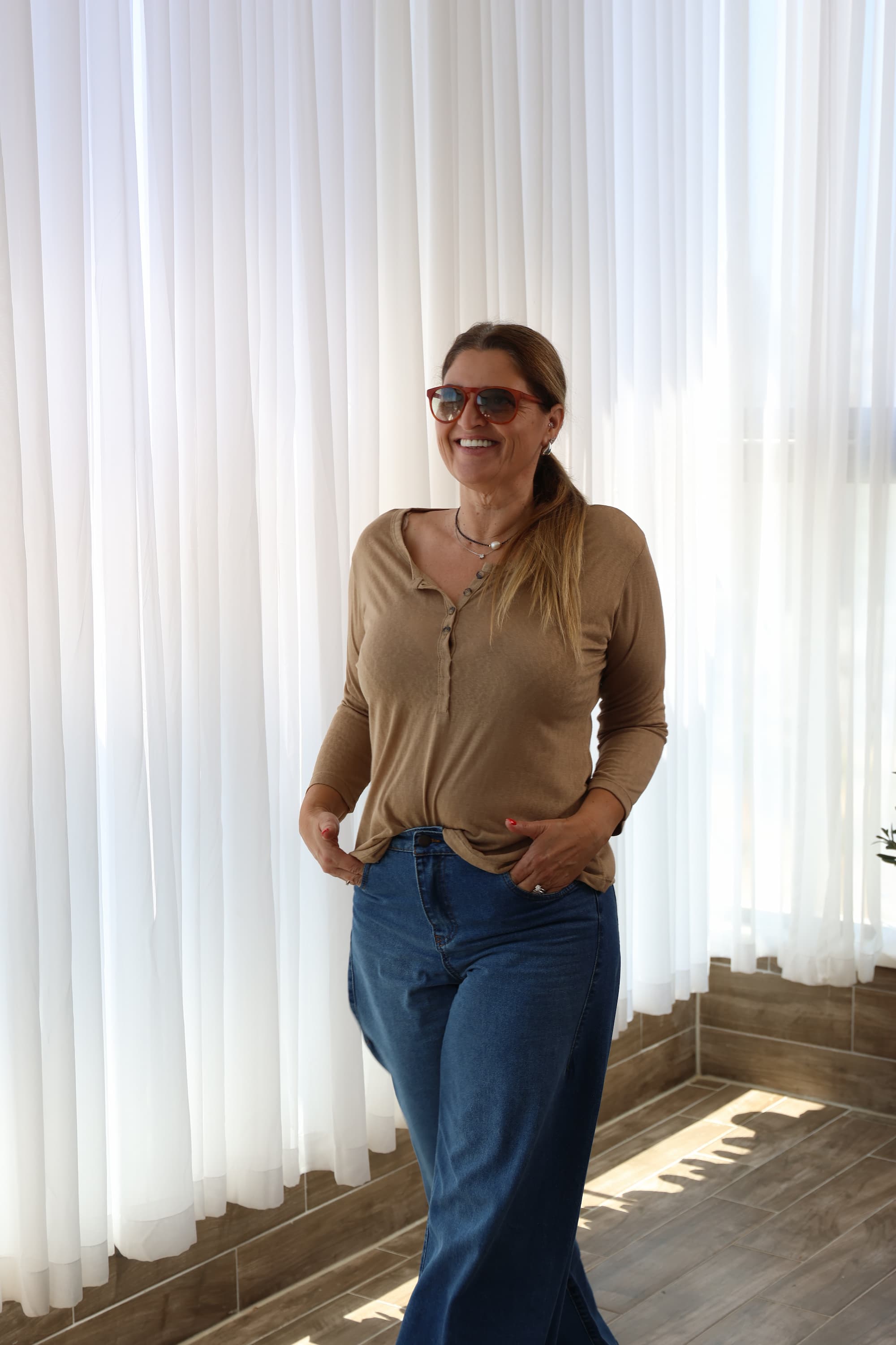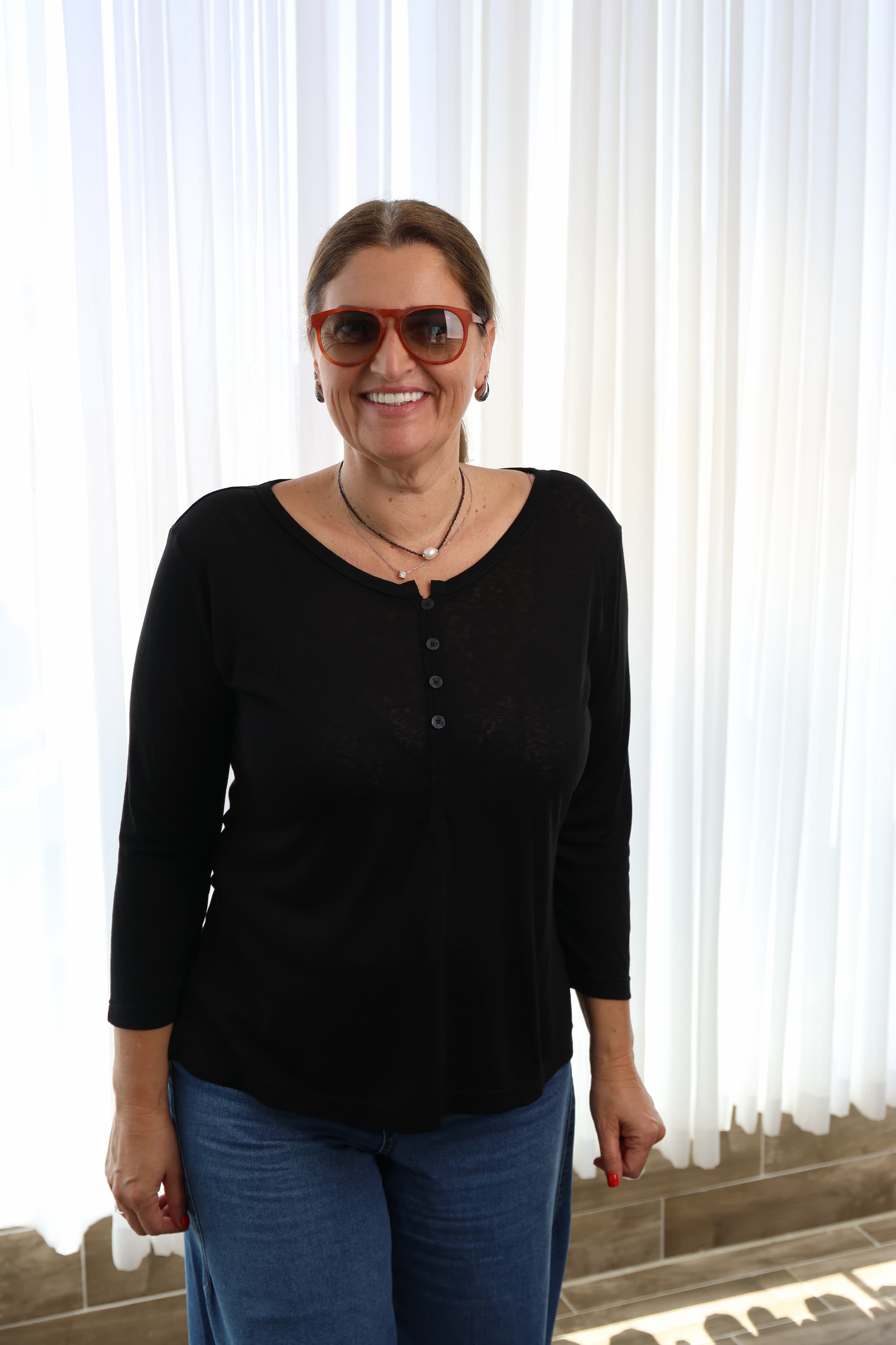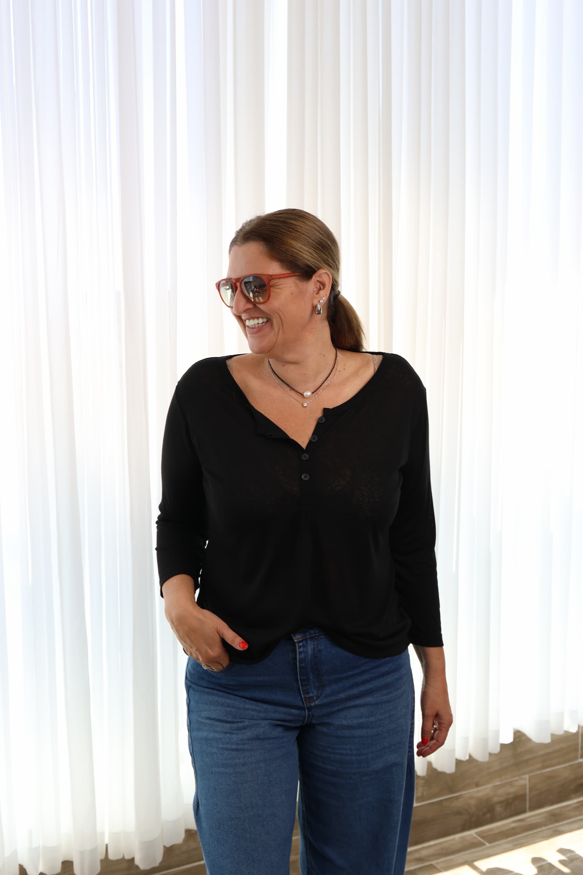 חולצה עם שרוול 3/4 וכפתורים מבד נעים לקיץ