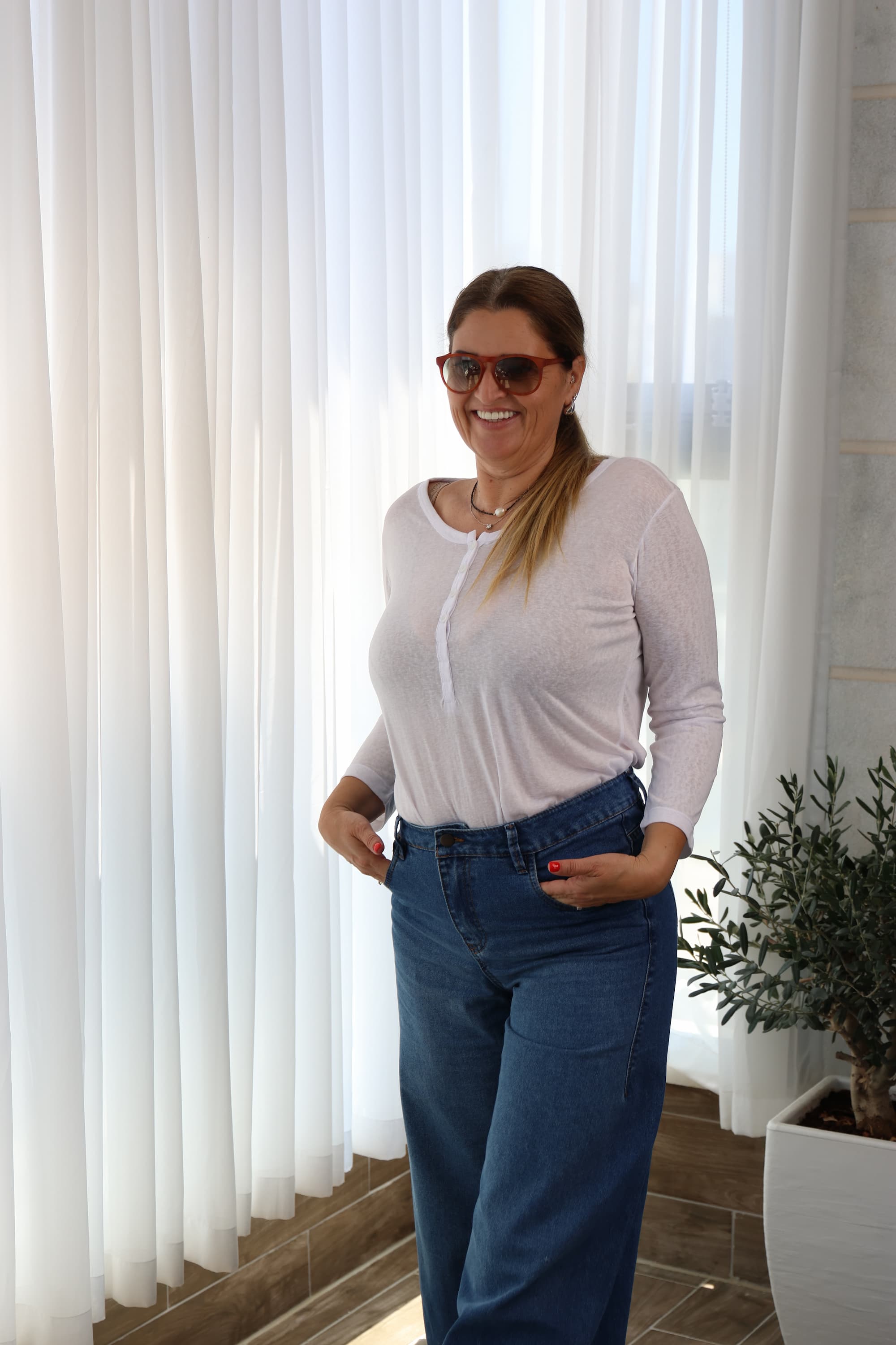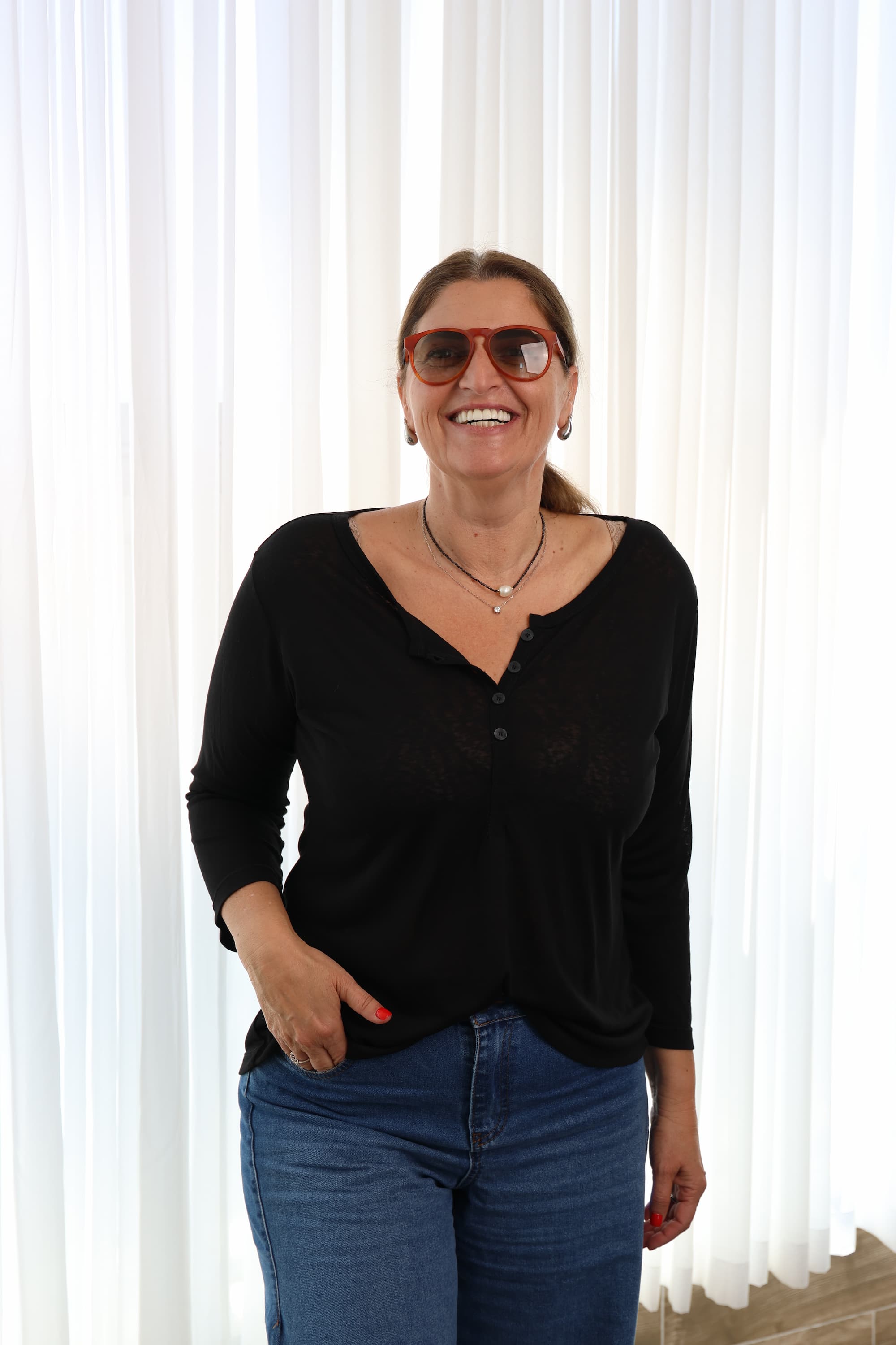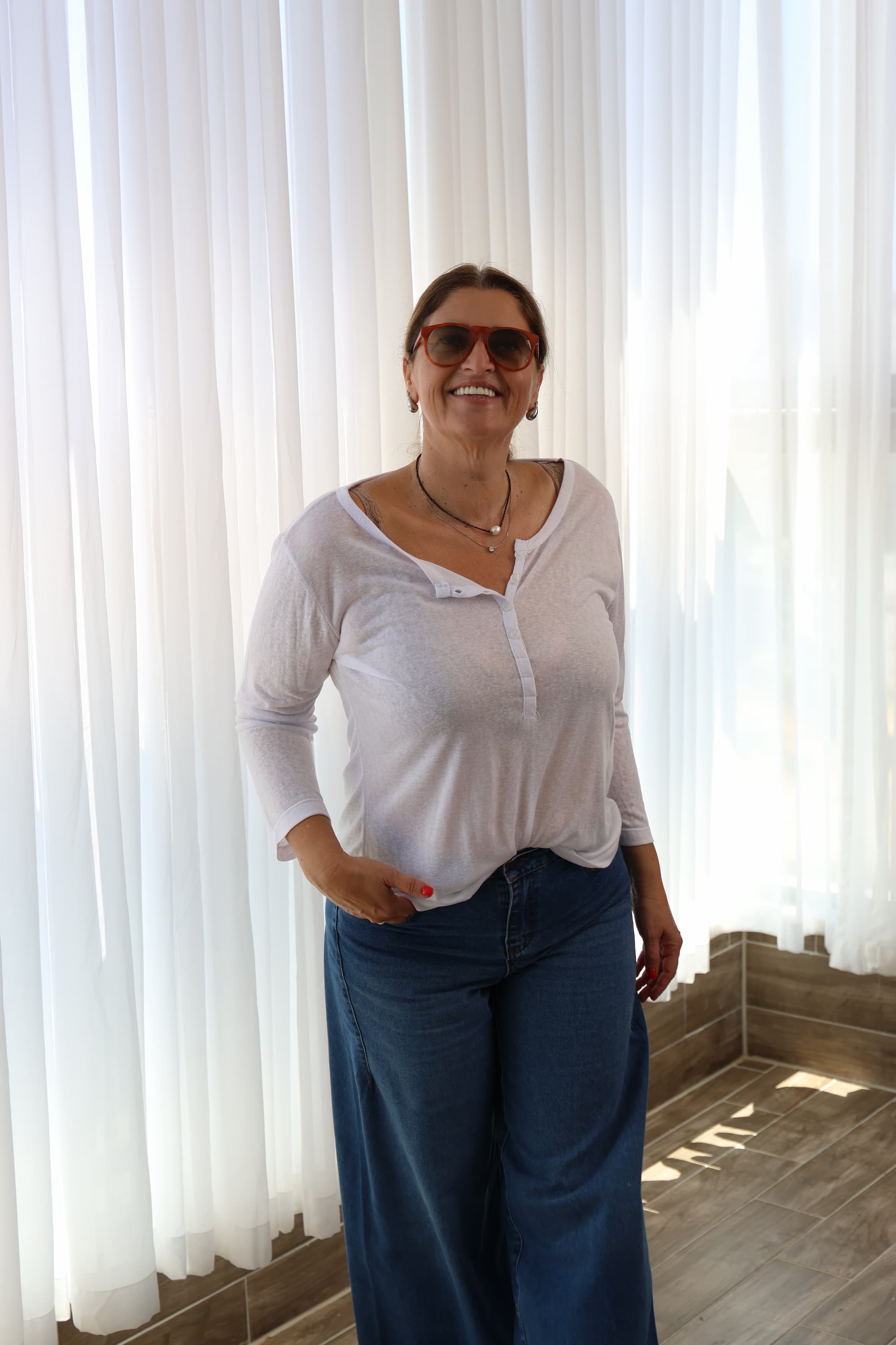 חולצה עם שרוול 3/4 וכפתורים מבד נעים לקיץ