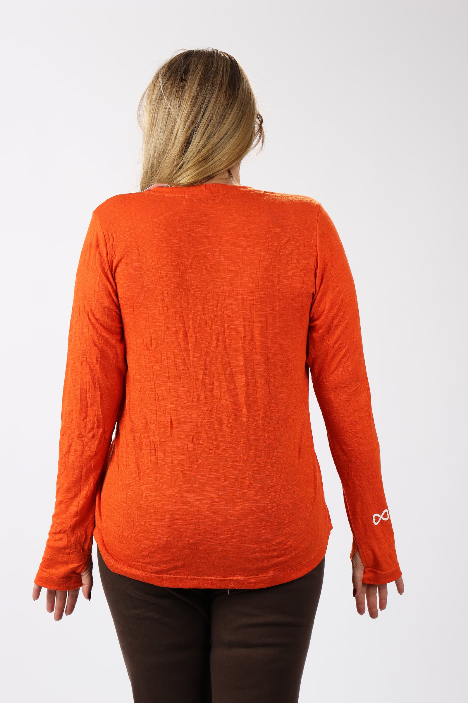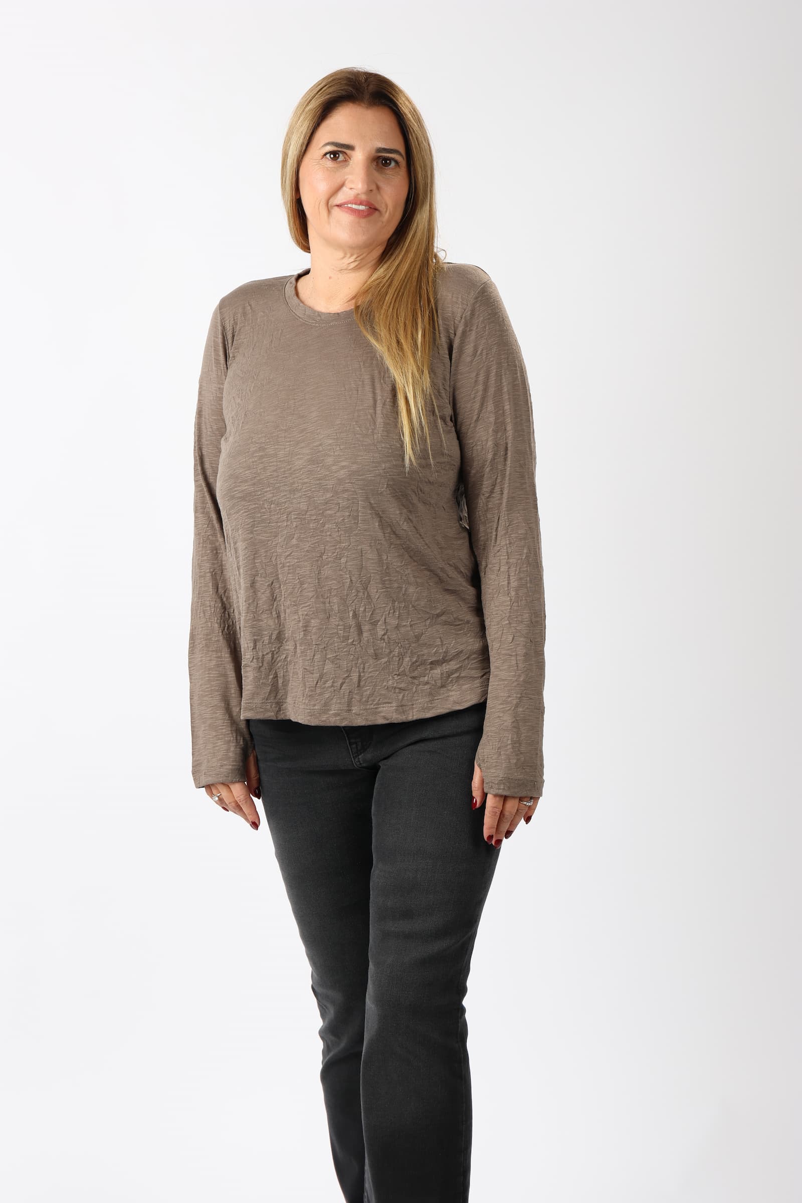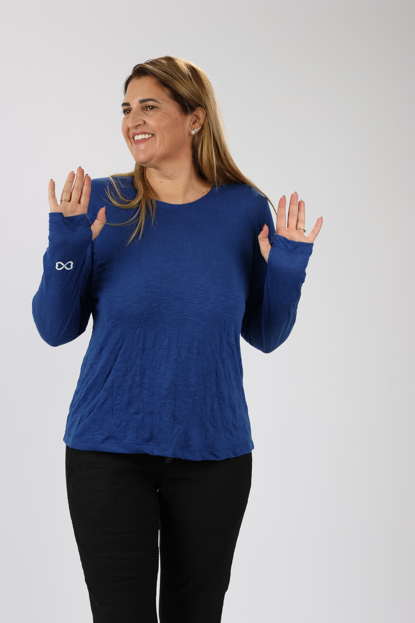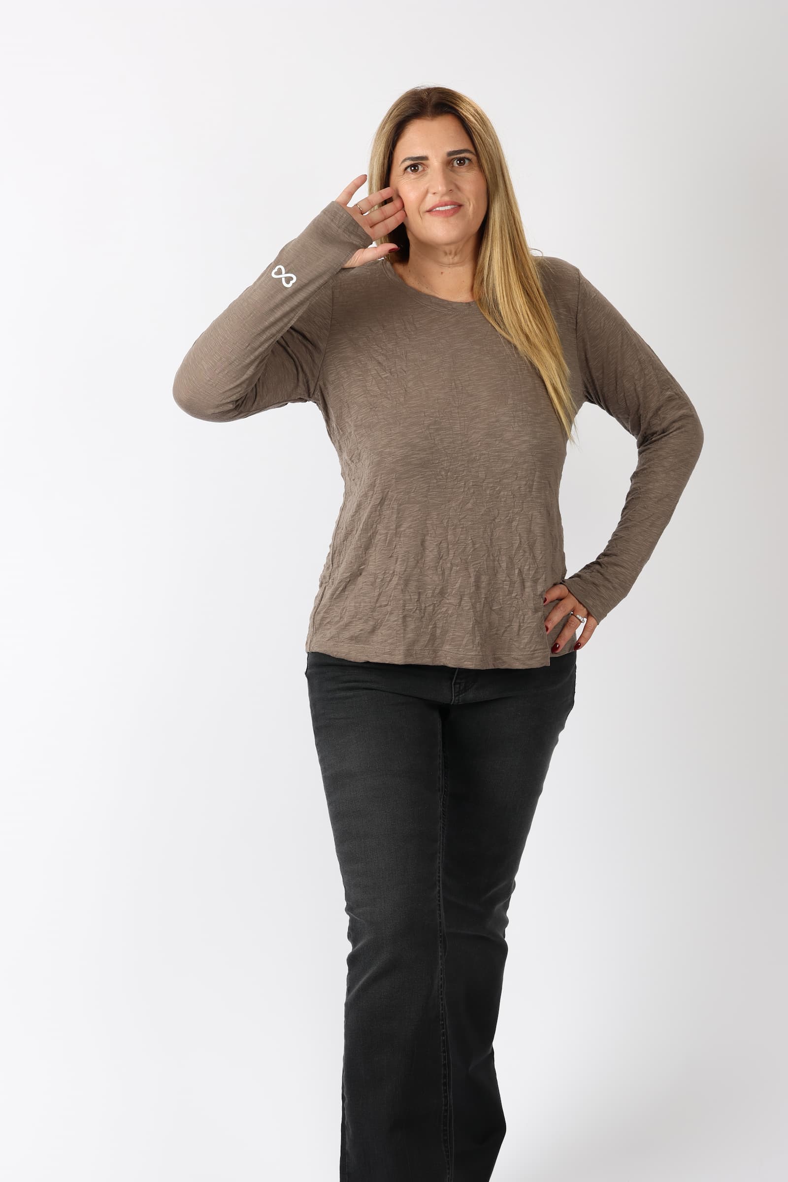 A חולצה ניקי מבד מקומט עם הדפס אינפיניטי וחור לאגודל בגזרה