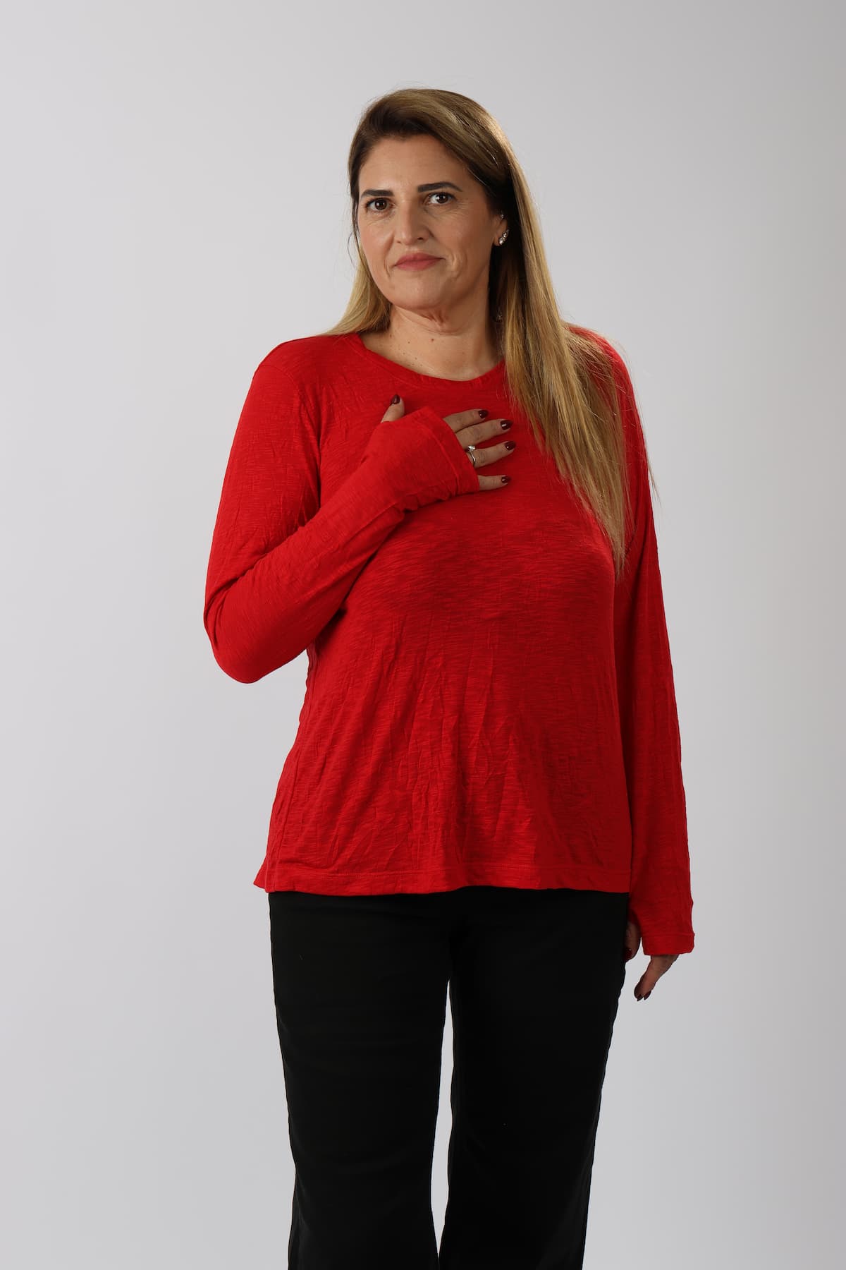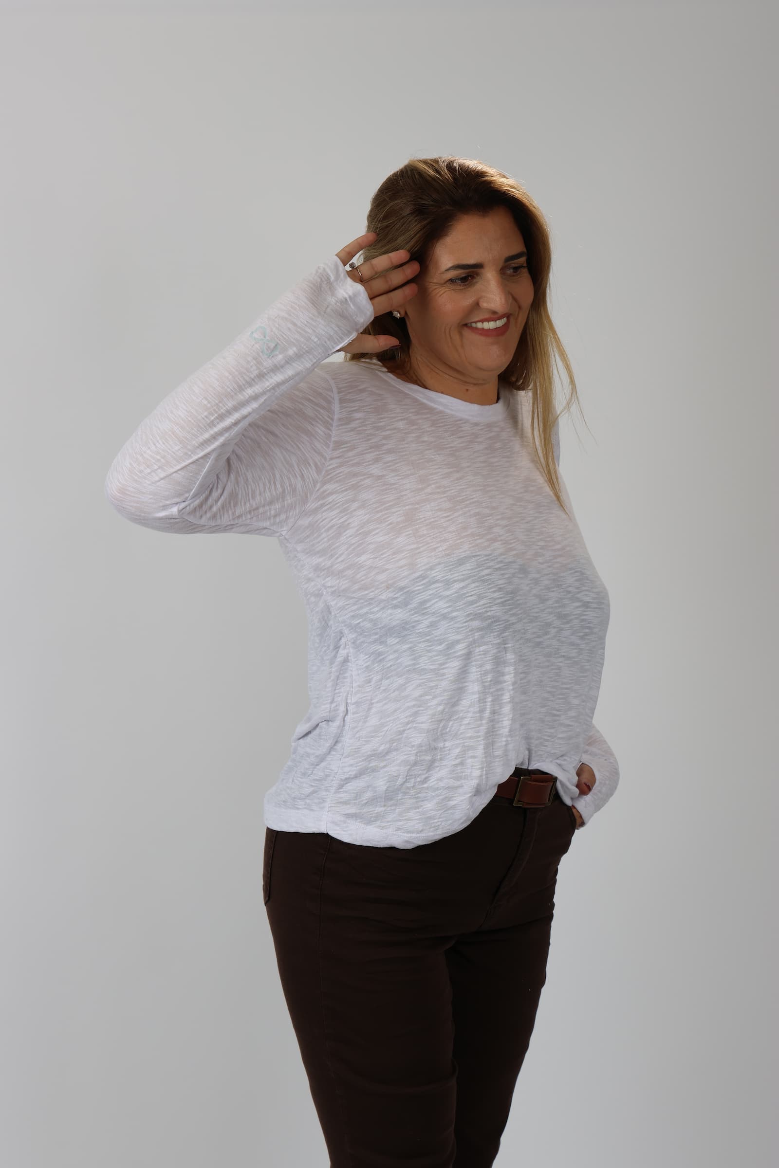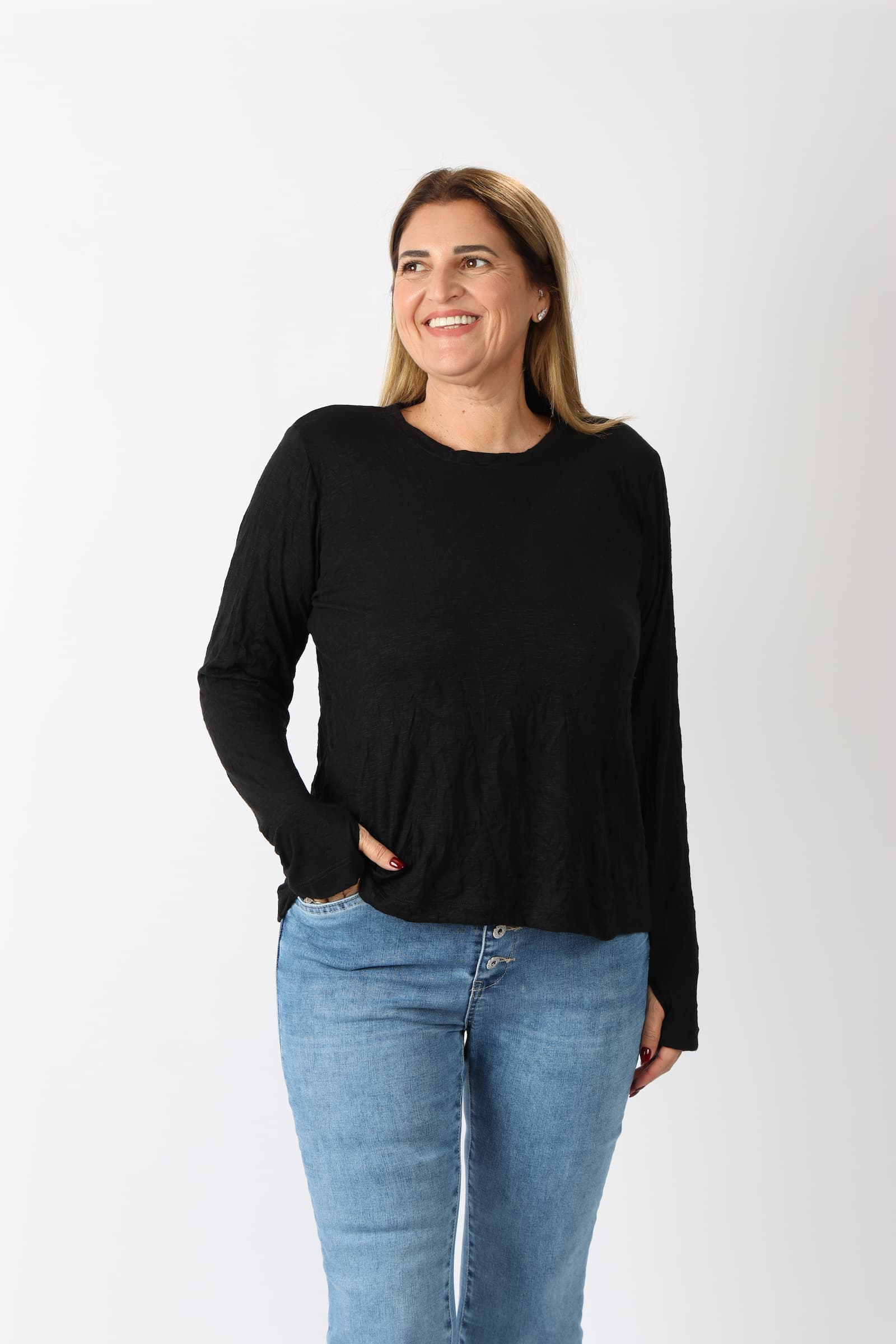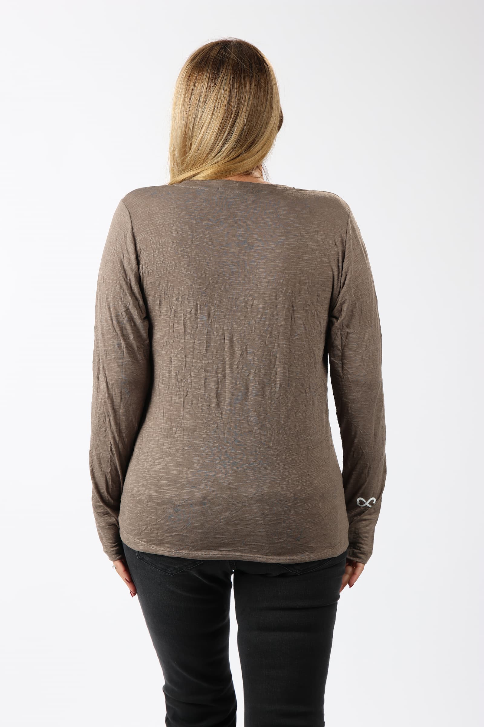 A חולצה ניקי מבד מקומט עם הדפס אינפיניטי וחור לאגודל בגזרה
