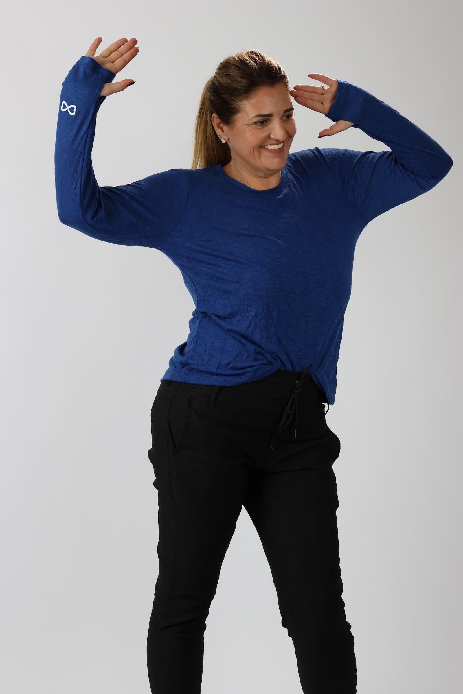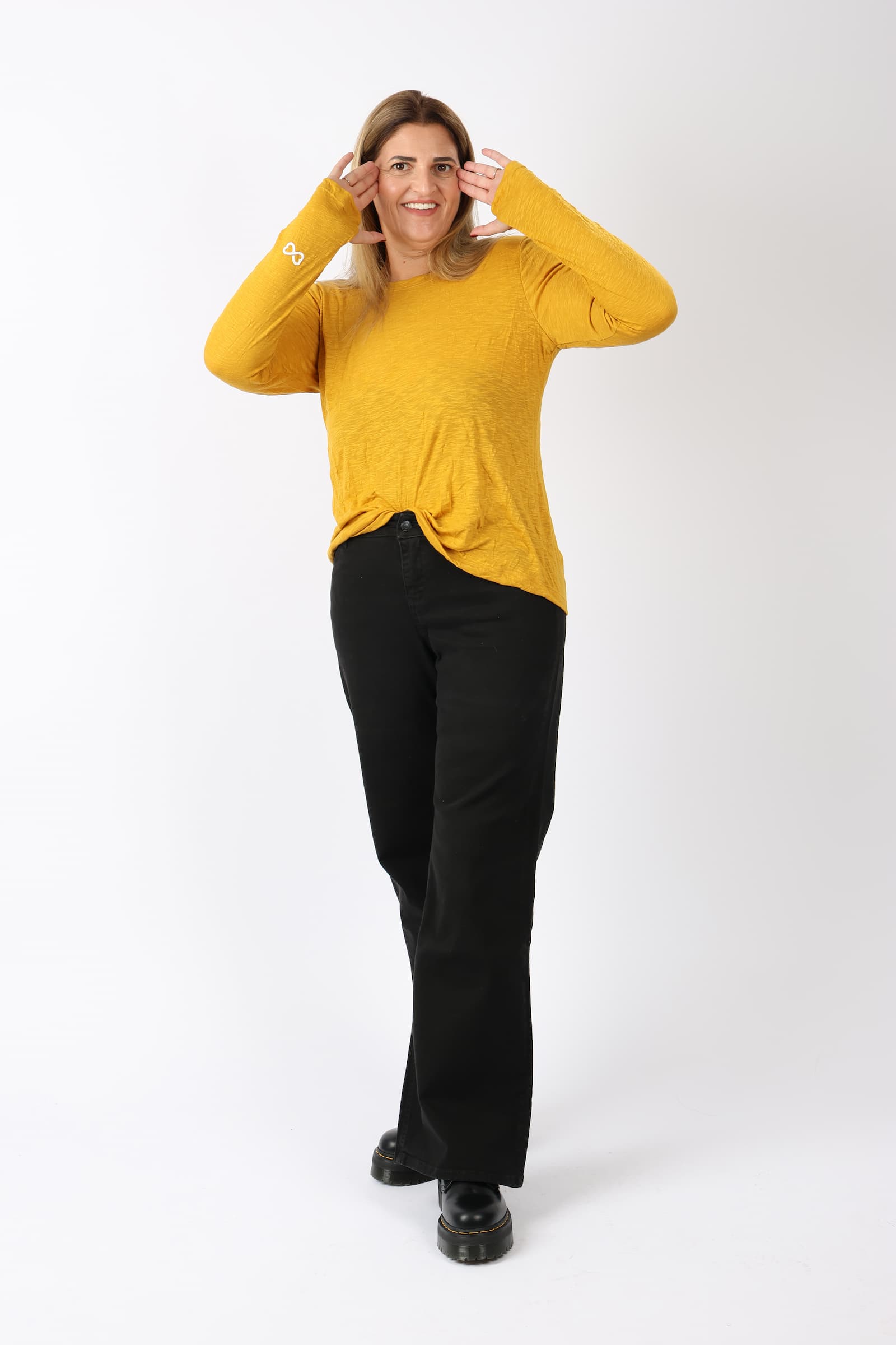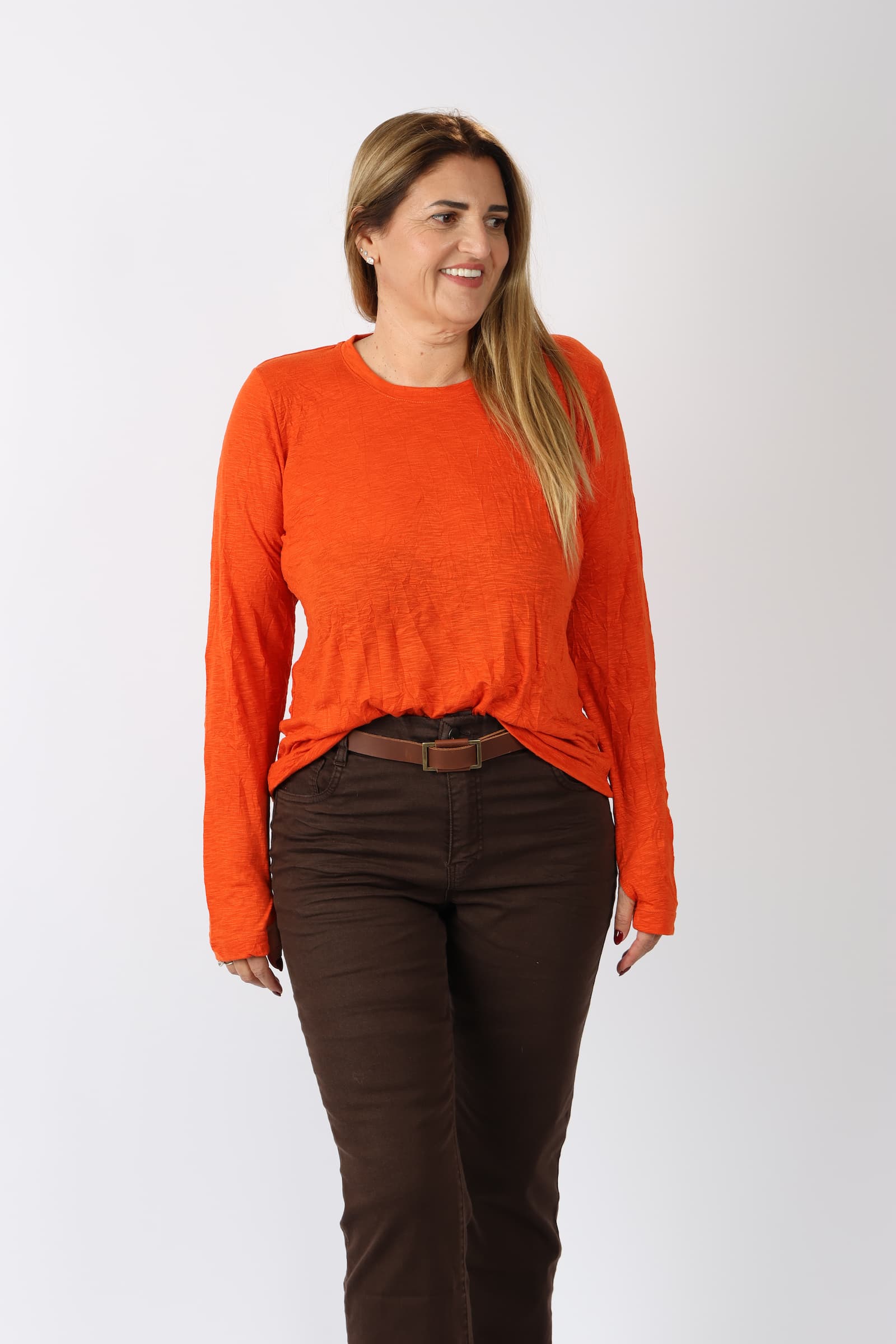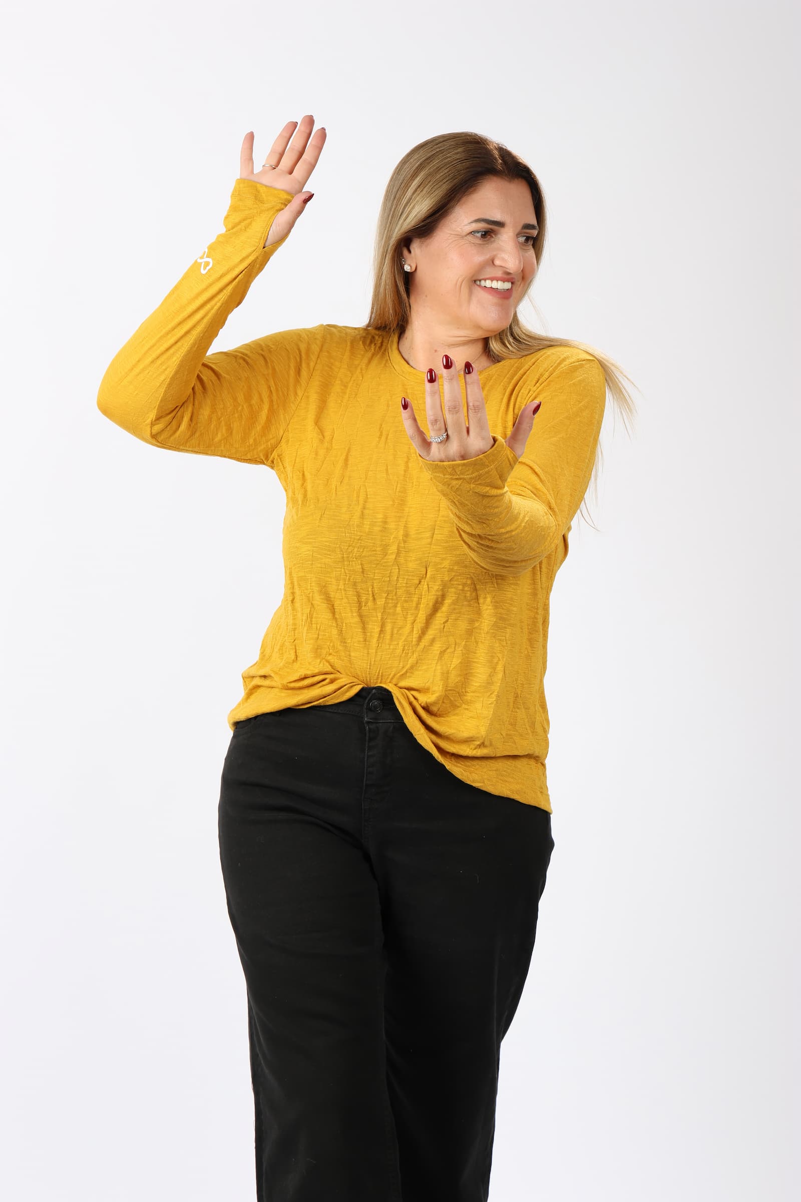 A חולצה ניקי מבד מקומט עם הדפס אינפיניטי וחור לאגודל בגזרה