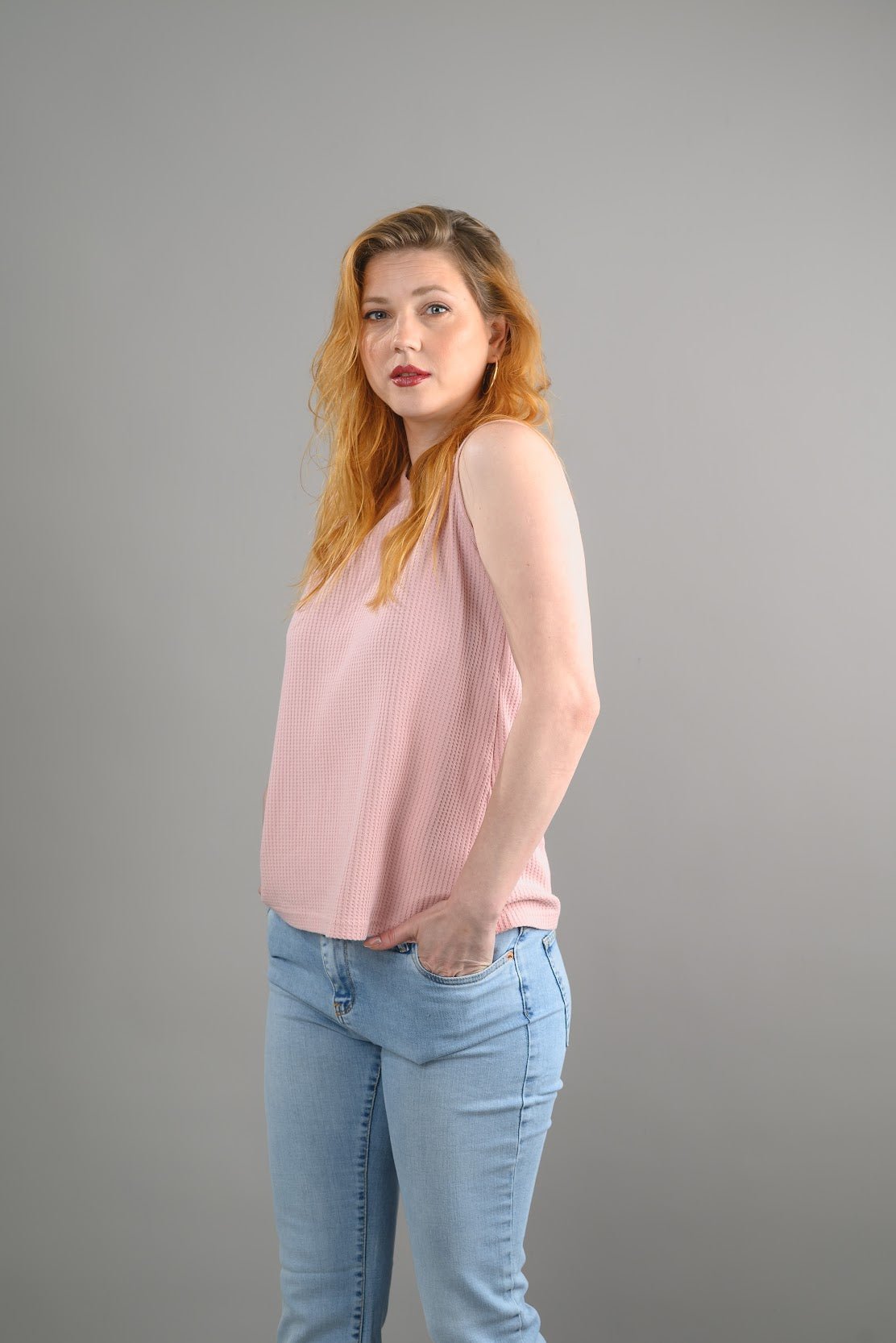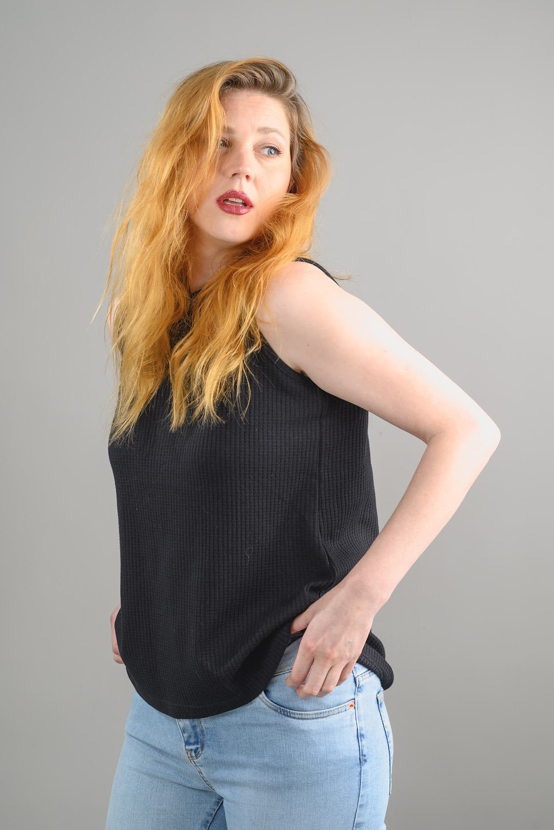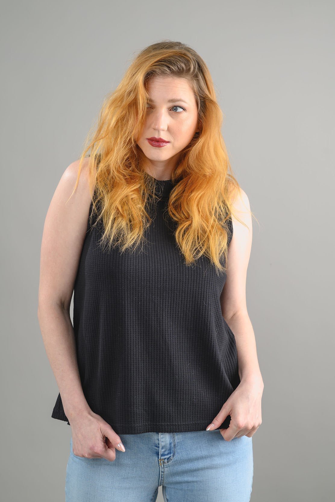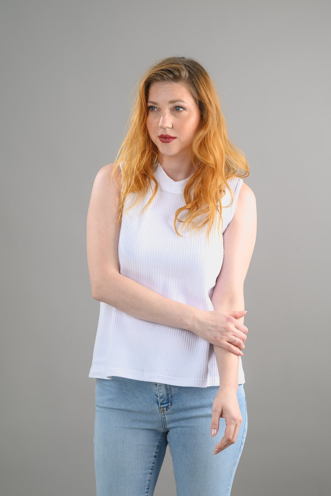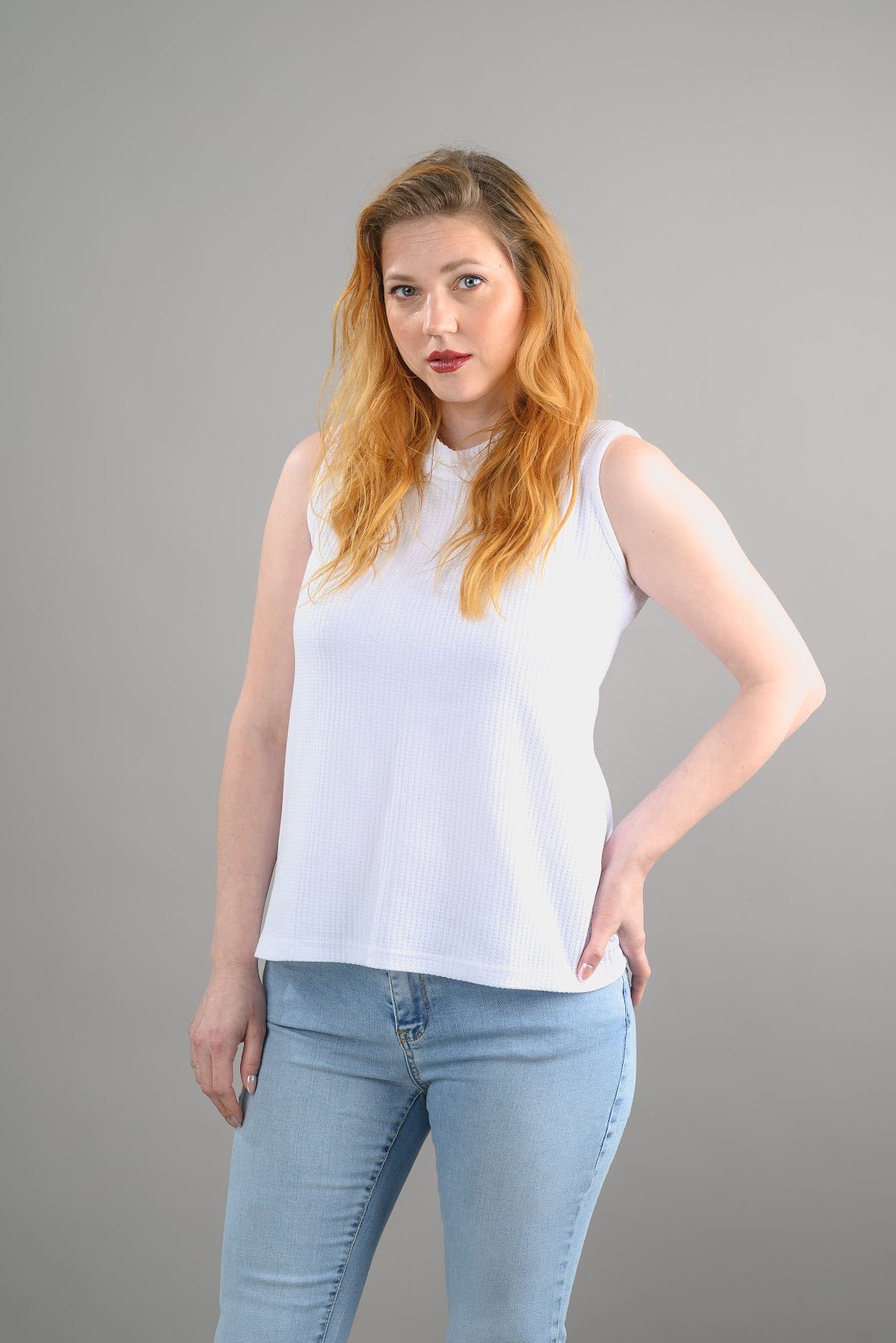 גופיה מבד וופל עם צווארון ניקי מיוחד