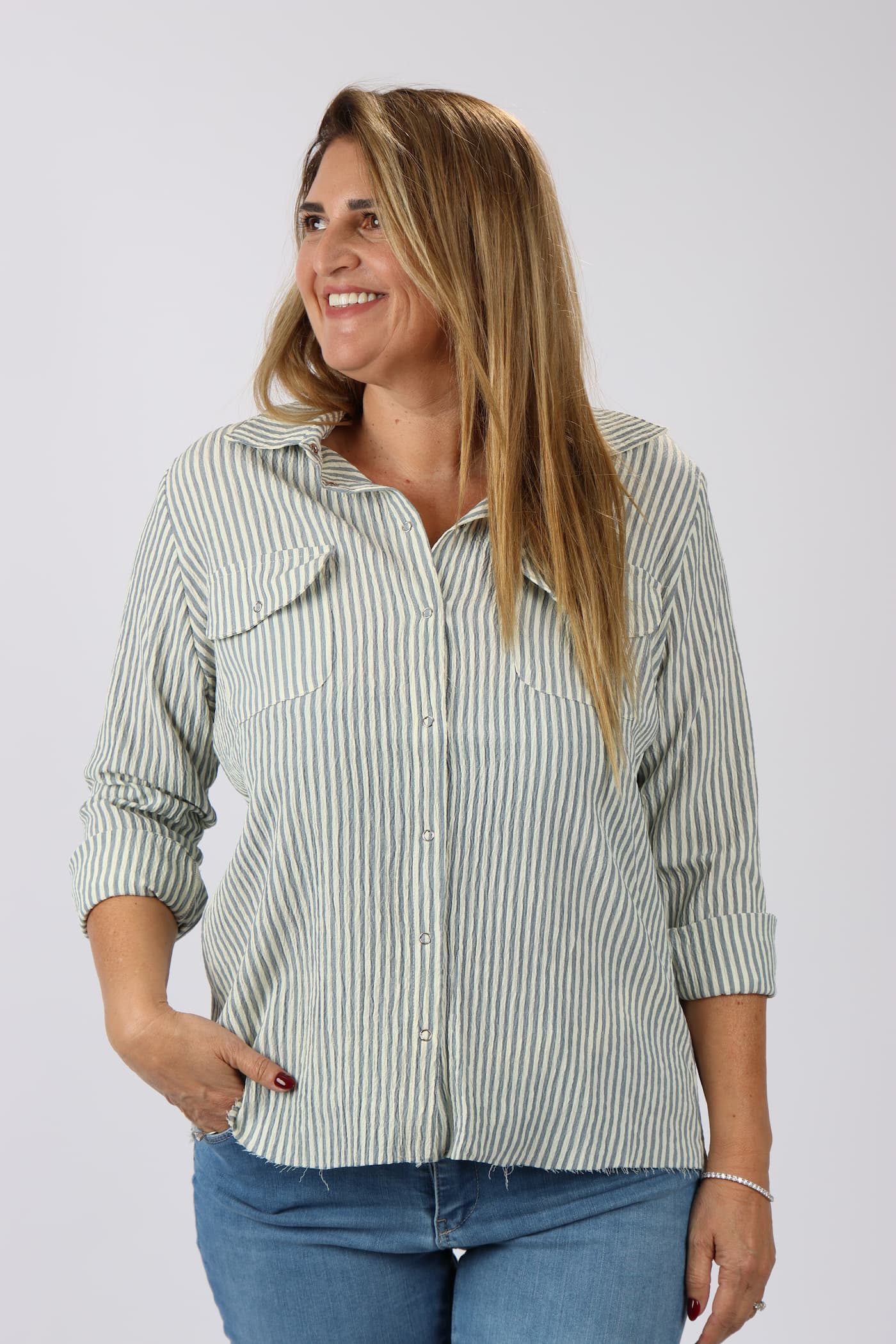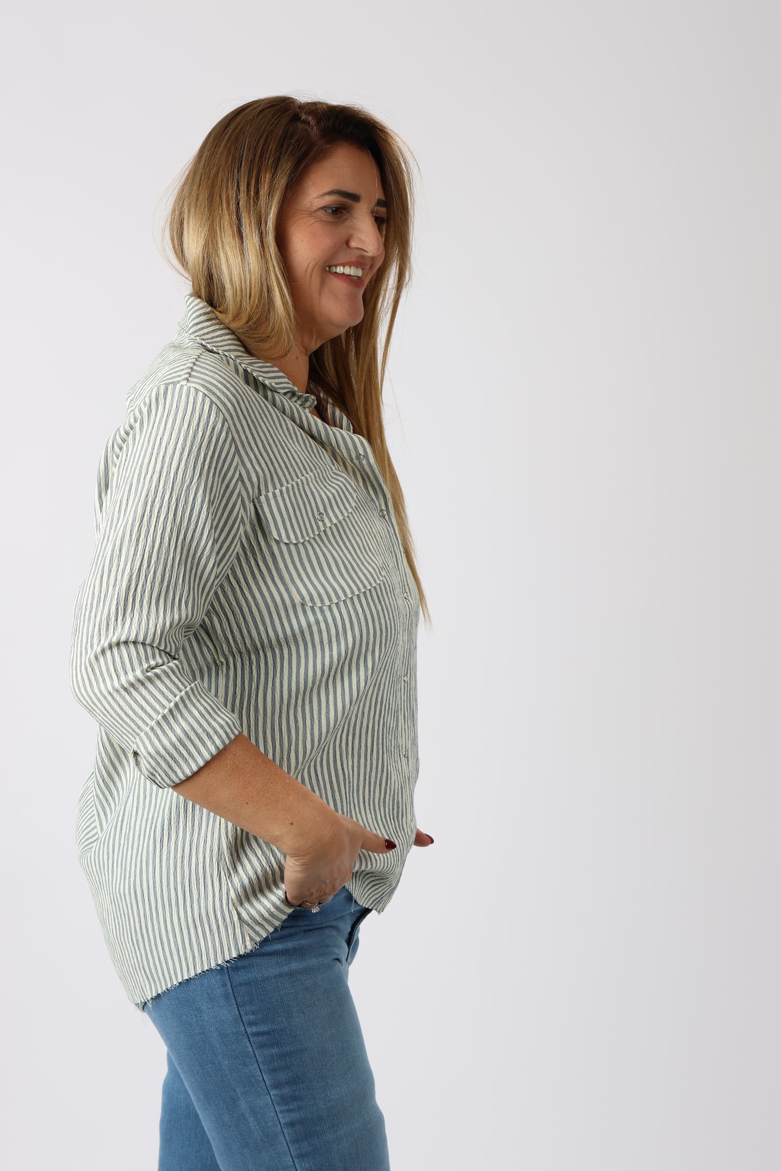 חולצה דורין מכופתרת היכולה לשמש גם כעליונית עם טיקטקים בגזרה מחמיאה