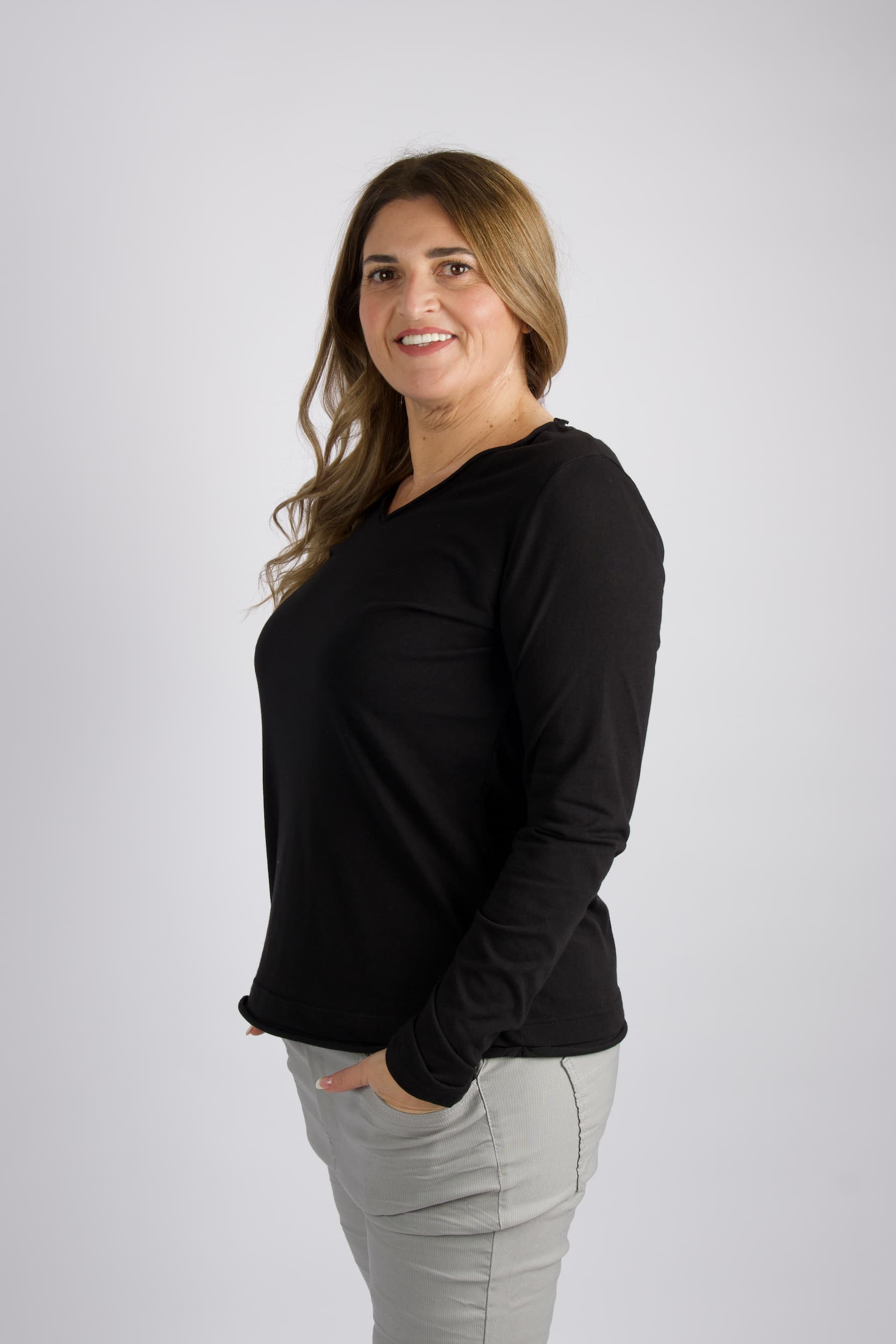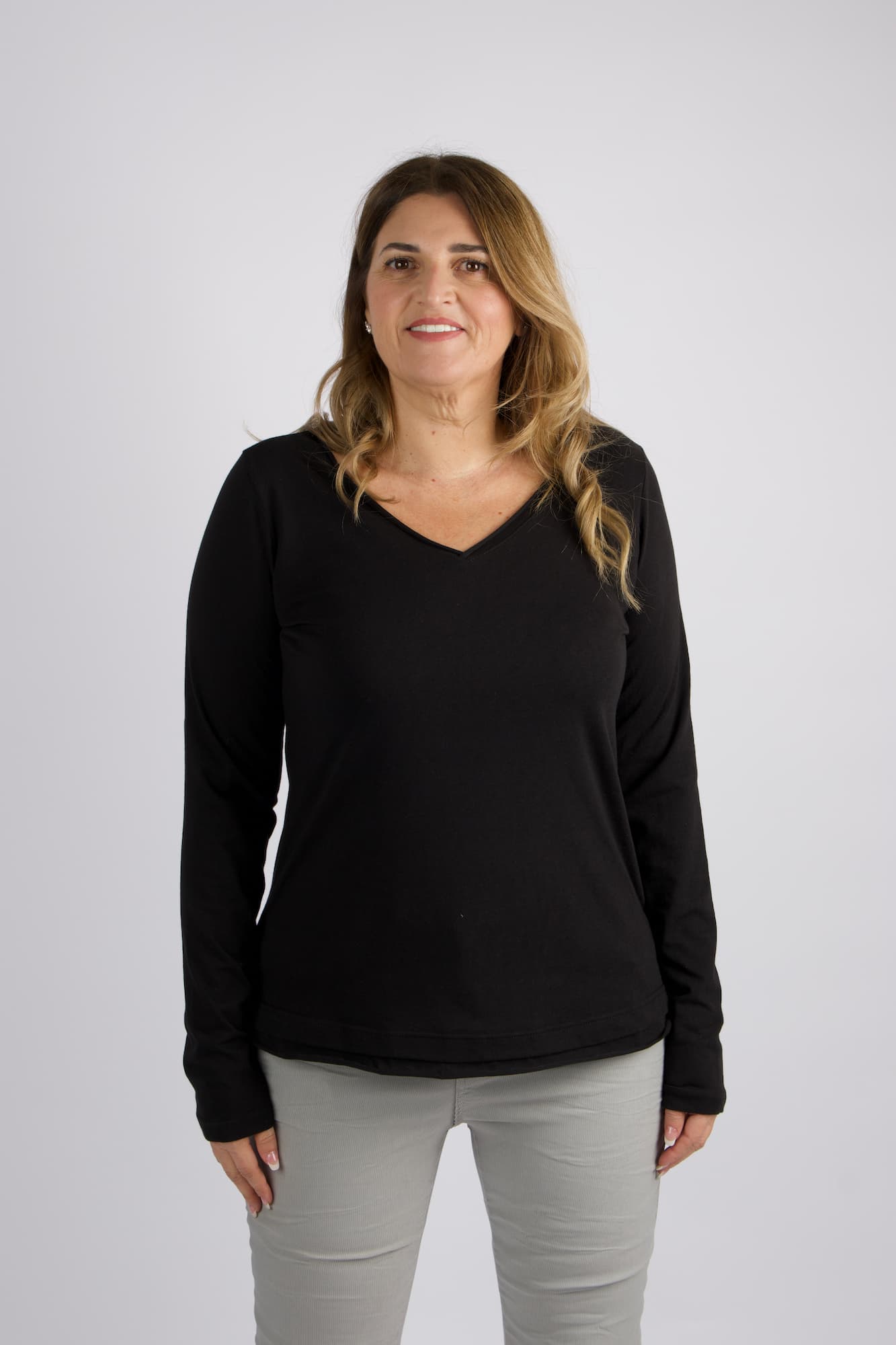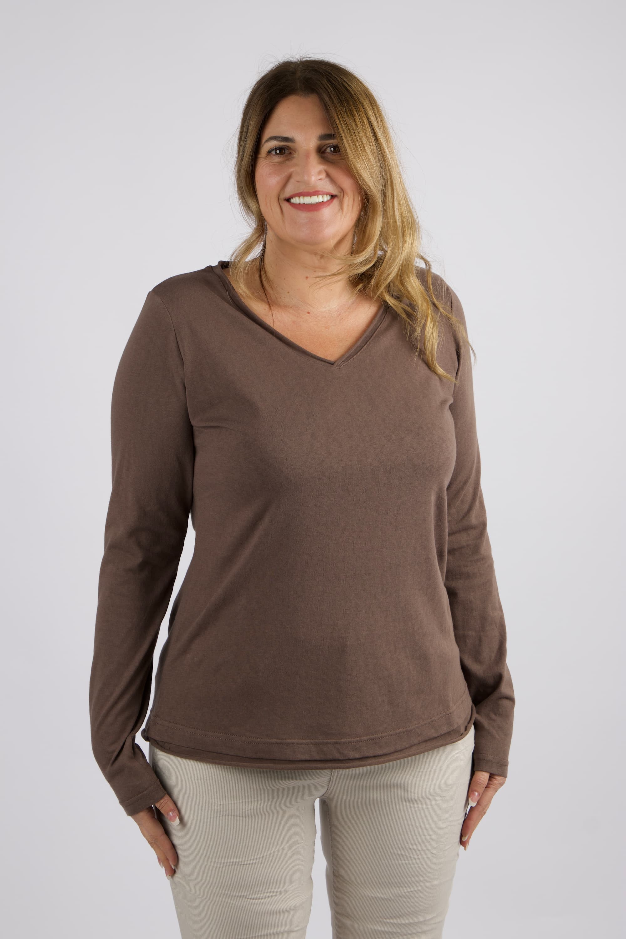 Zoe - חולצת וי בייסיק עם גימור מתגלגל